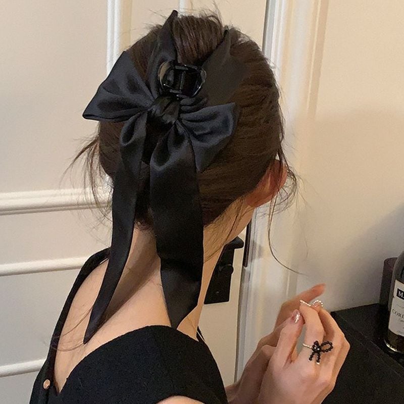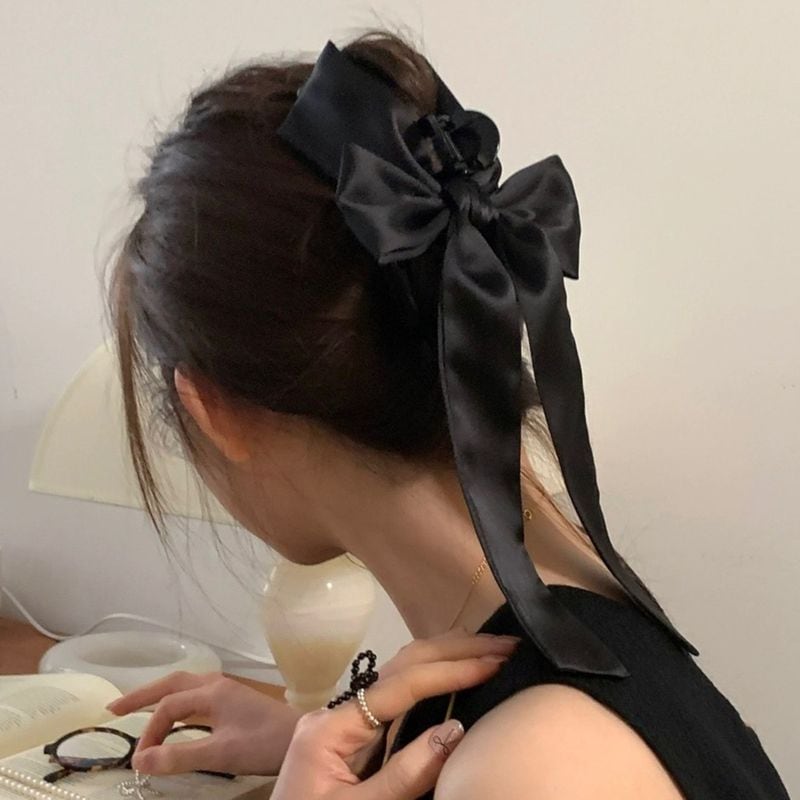 艶やかなサテンリボンが揺れる、上品で華やかなロングリボンヘアクリップ♡