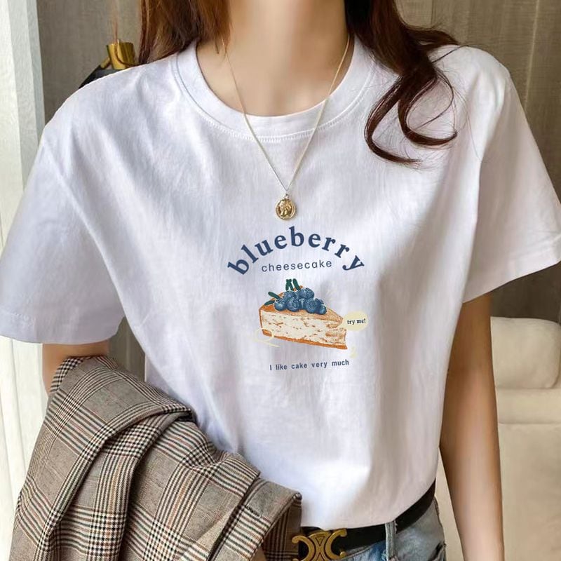 ブルーベリーケーキグラフィッククルーネックTシャツ L0931