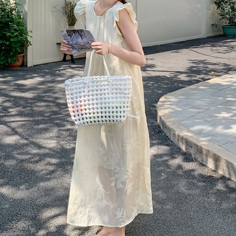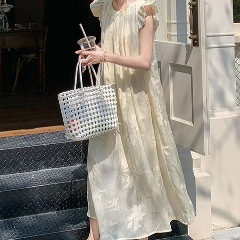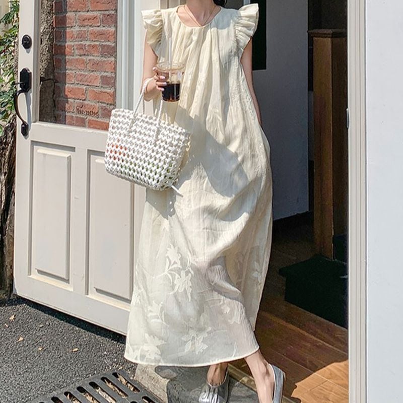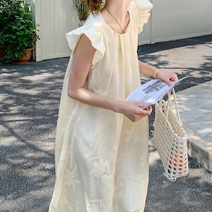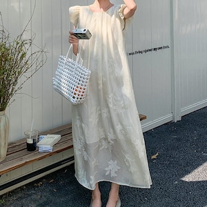 フライングスリーブボタニカルジャガードワンピース L0982