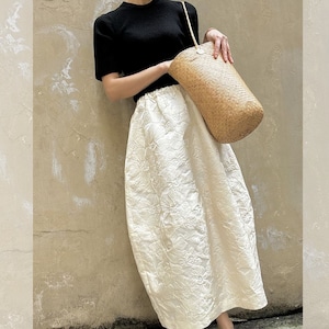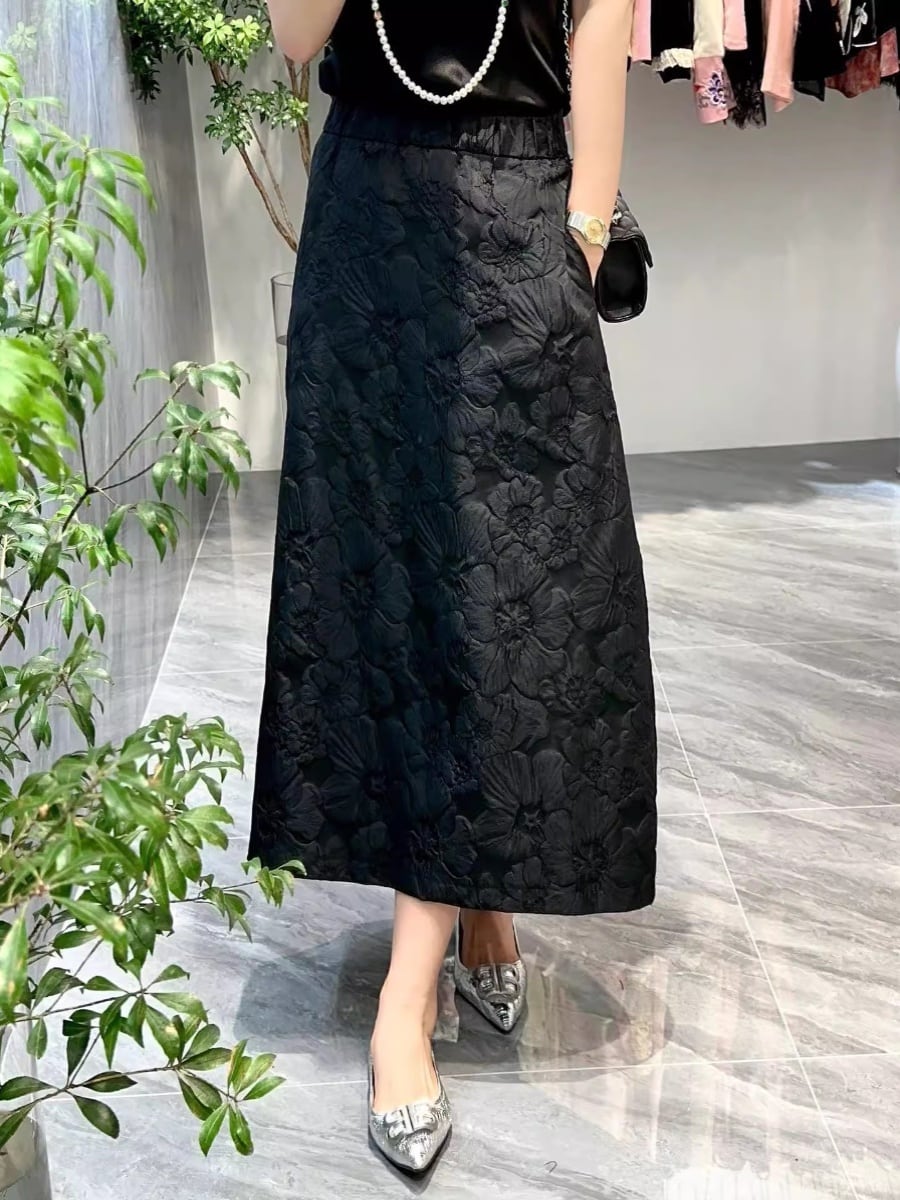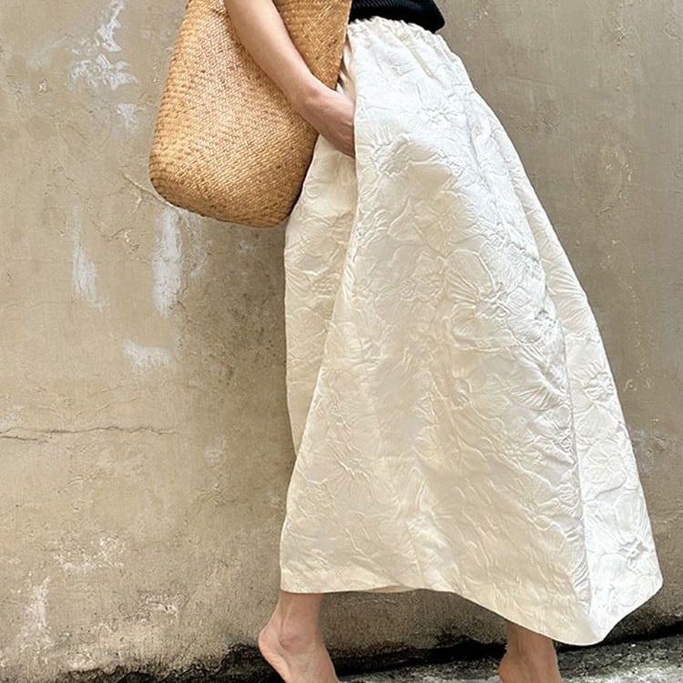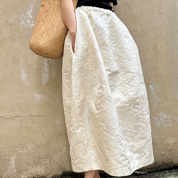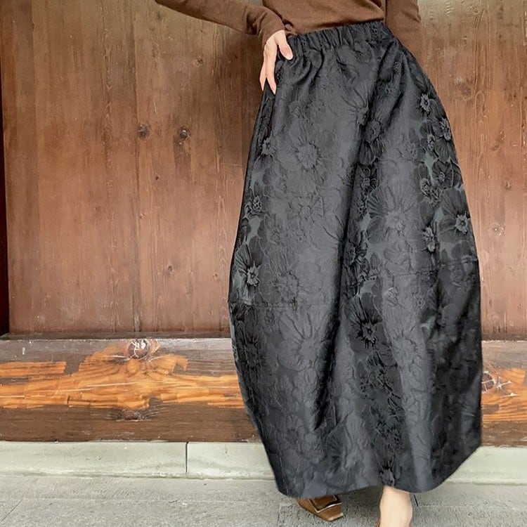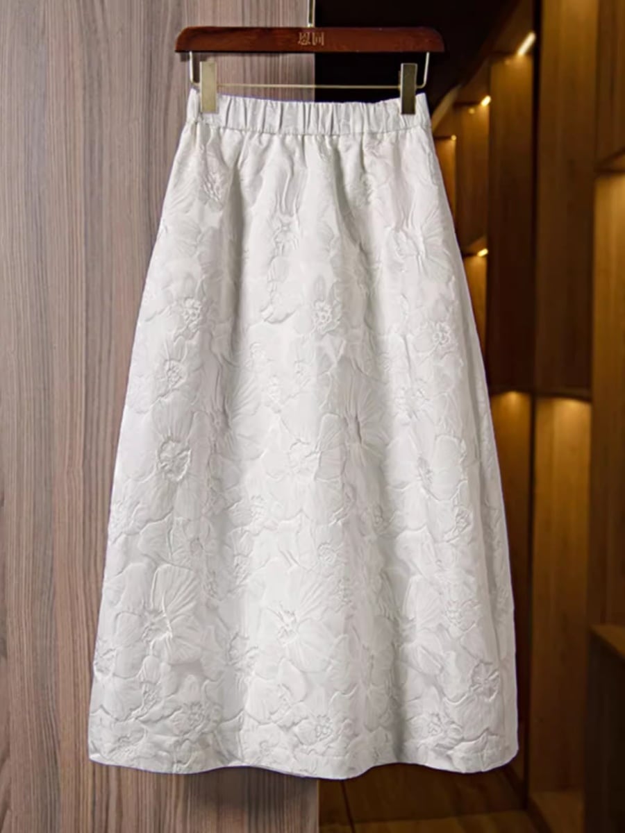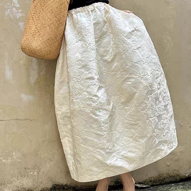 立体感のあるフラワーエンボスが華やかに映える、上品コクーンスカート。