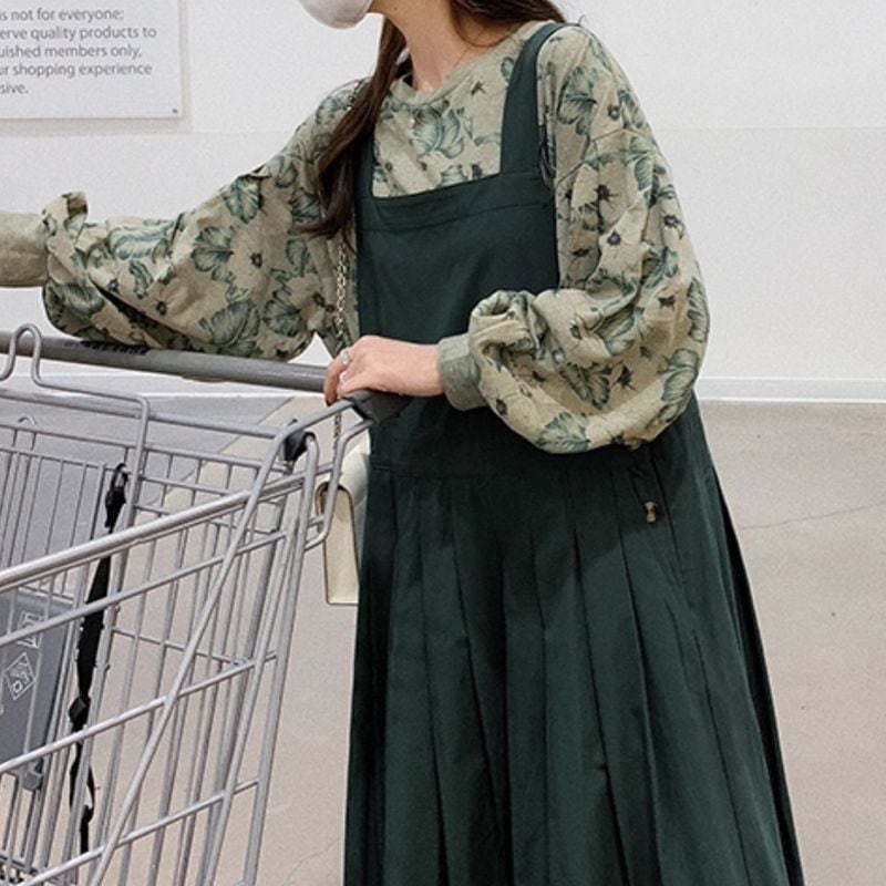 (2点セット)ボタニカルシアーブラウス+プリーツジャンパースカートL0991