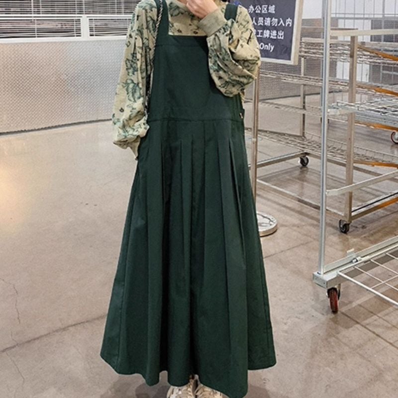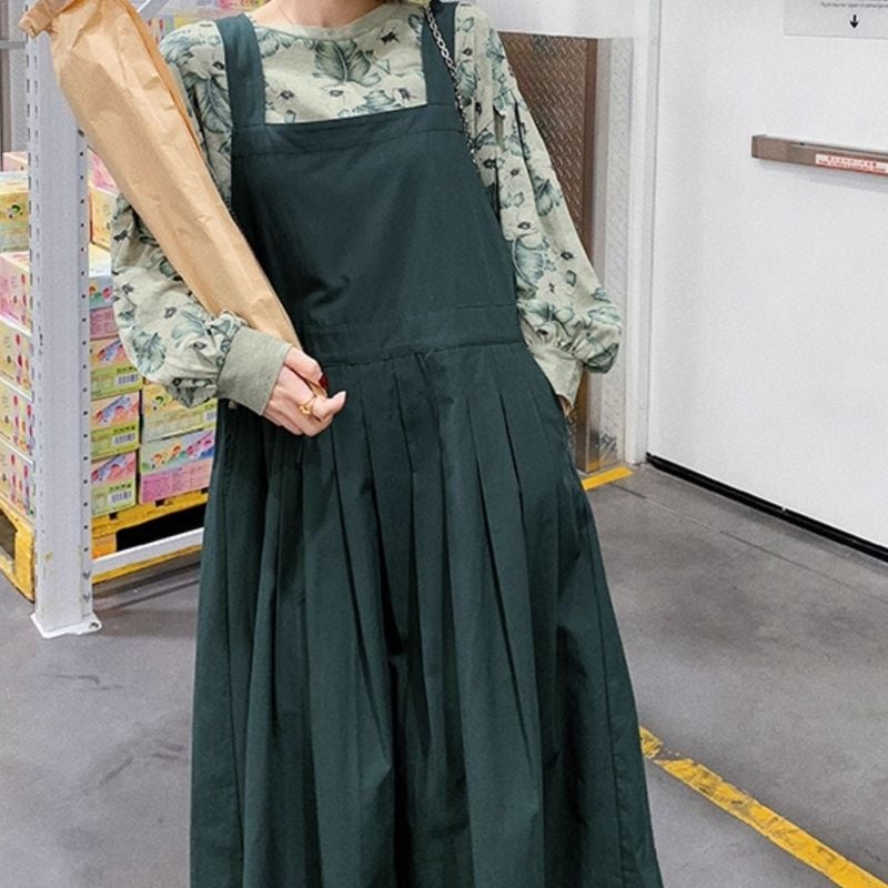 ジャンパースカートはきちんと感のあるプリーツデザインで、縦ラインを強調しスタイルアップ効果も。