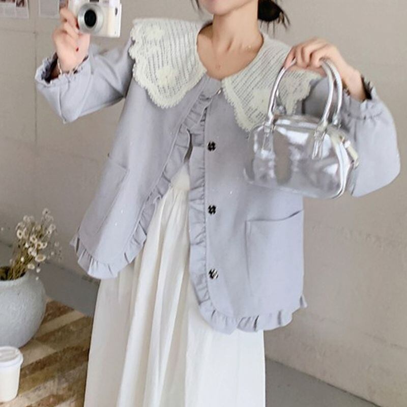 レース襟ポイントフリルショートジャケット L1005
