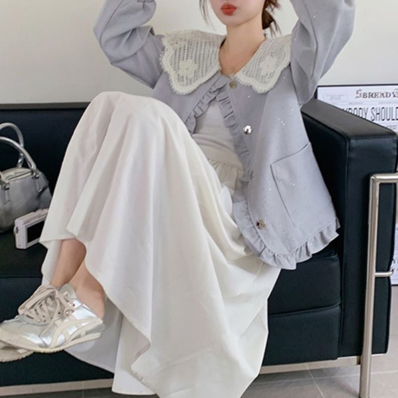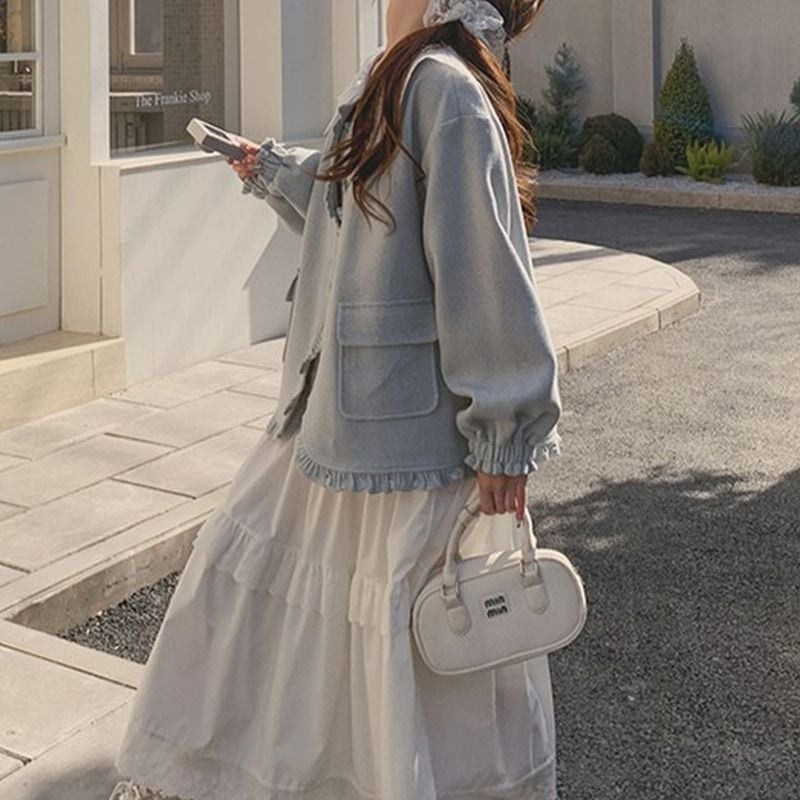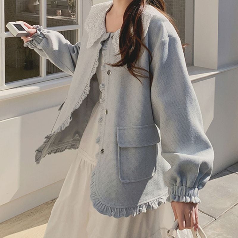 レース襟が顔まわりを華やかに魅せるショートジャケット。