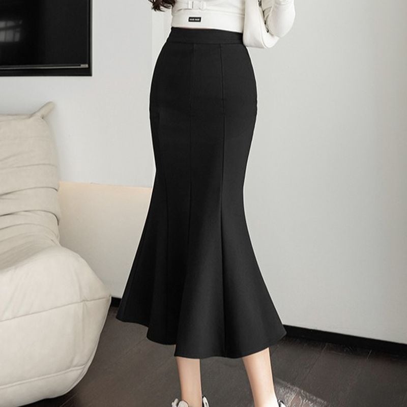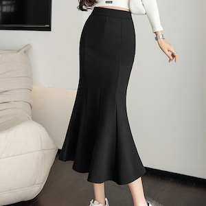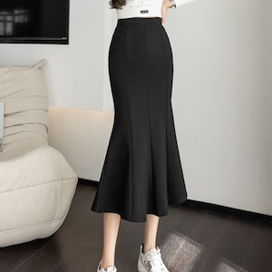 女性らしいラインを引き立てる、ハイウエストのマーメイドシルエットスカート。