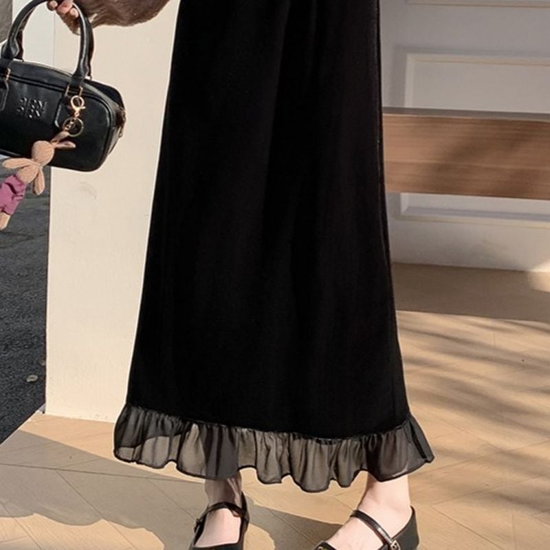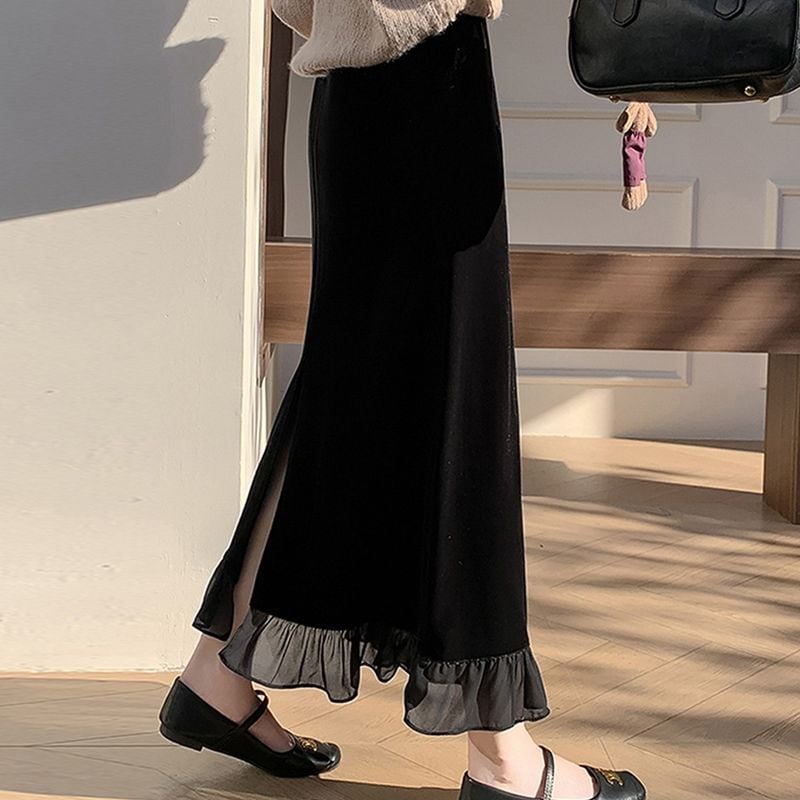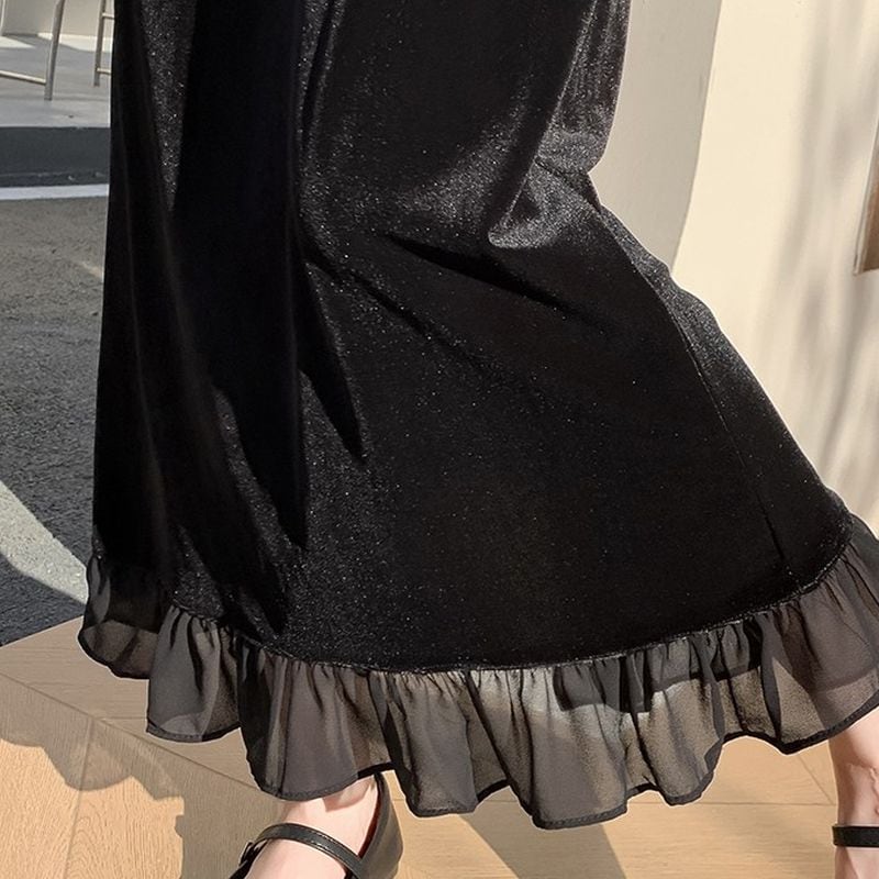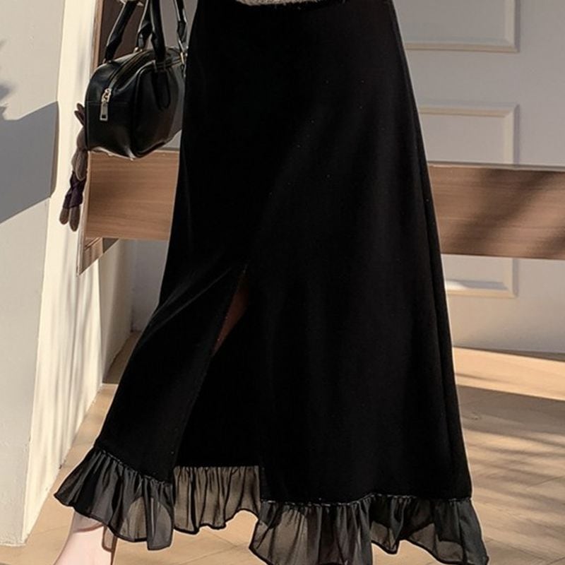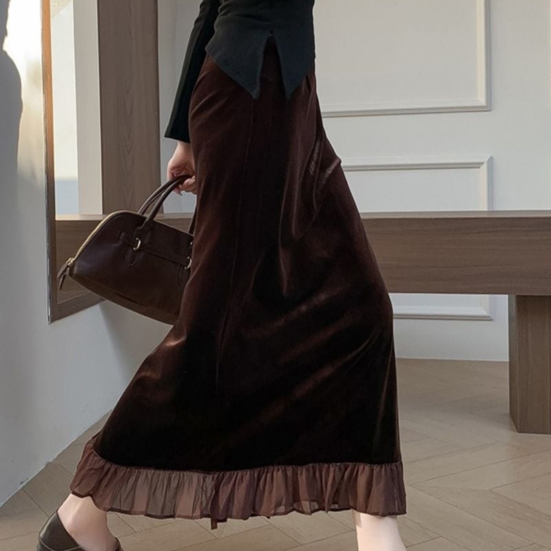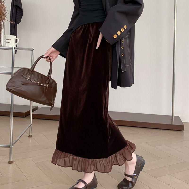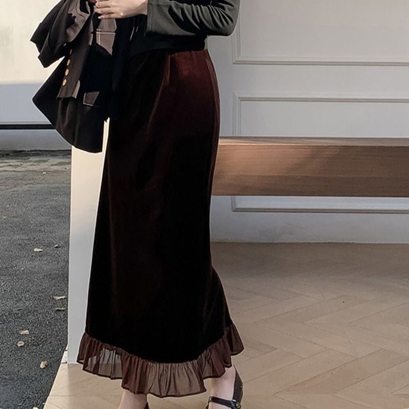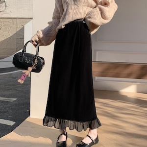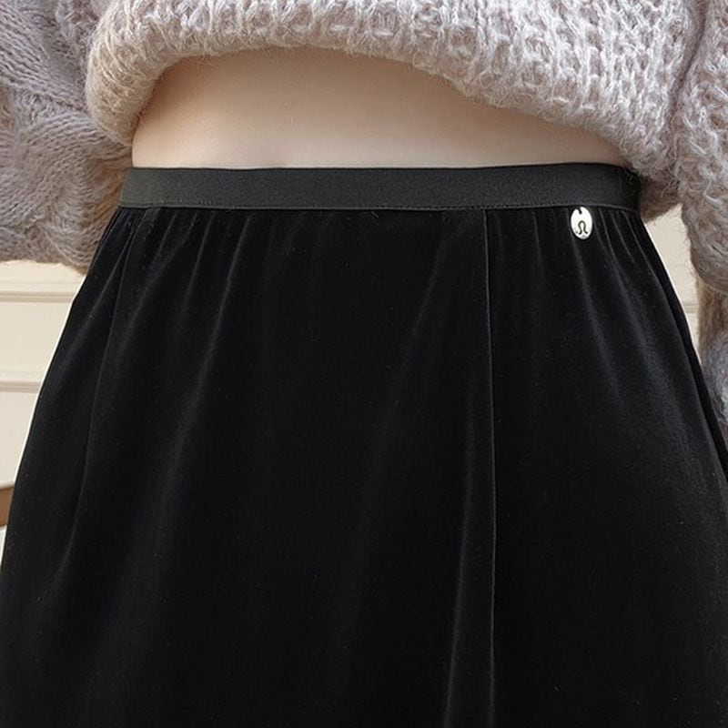 スリット入りミモレ丈ベロアヘムスカート L1053