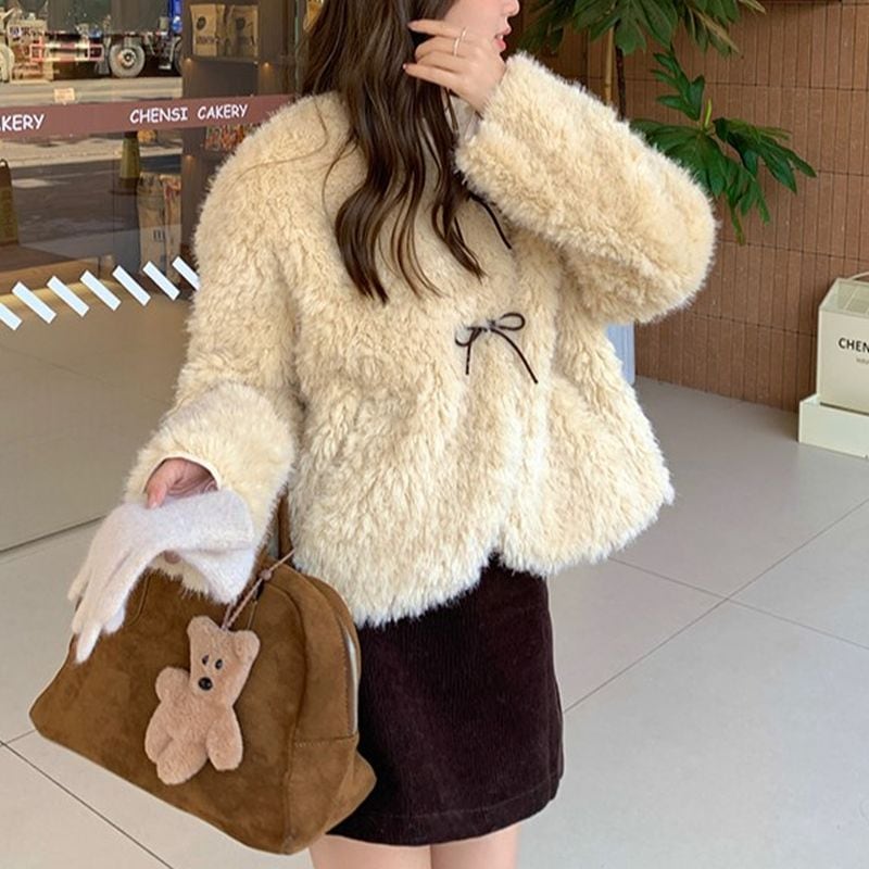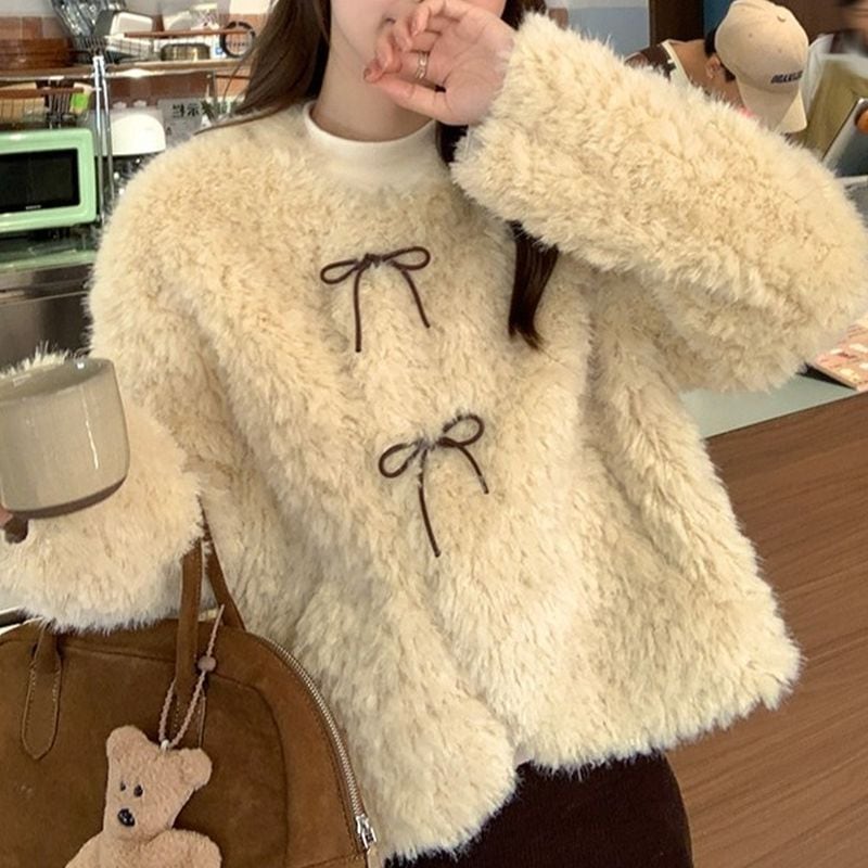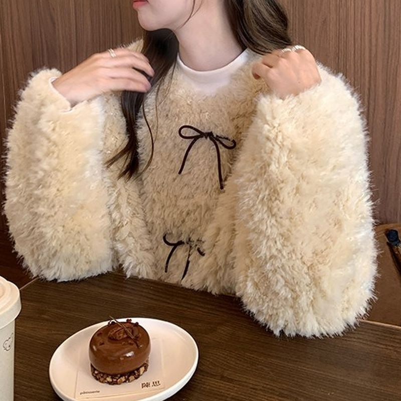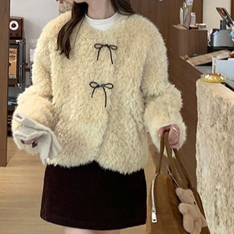 ノーカラーリボンボアブルゾン L1055