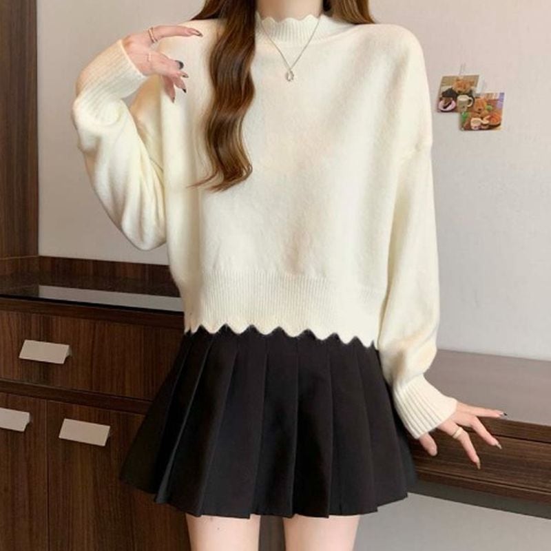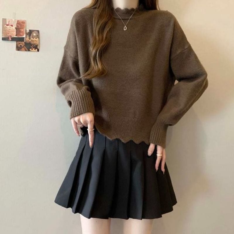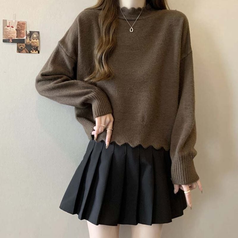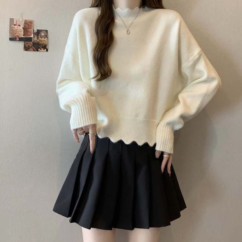 柔らかな風合いと上品なデザインが魅力のスカラップラインニット。