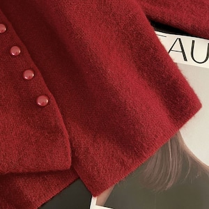 フロントのボタンデザインが上品さを添え、1枚でも羽織りとしても着映えするアイテムです。