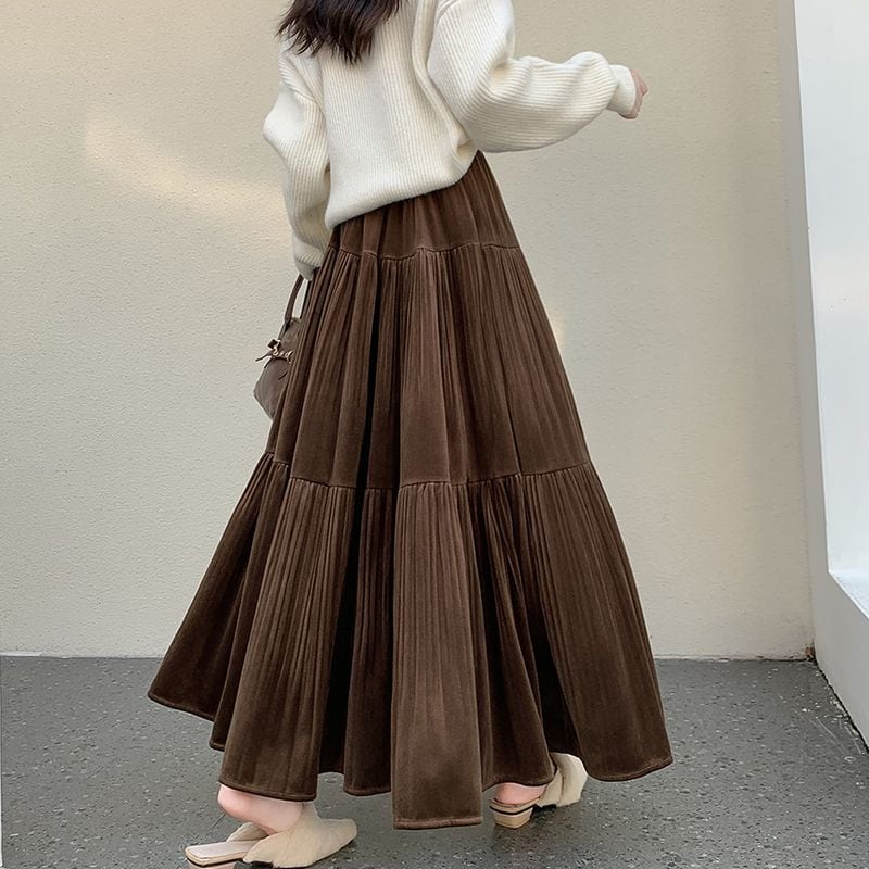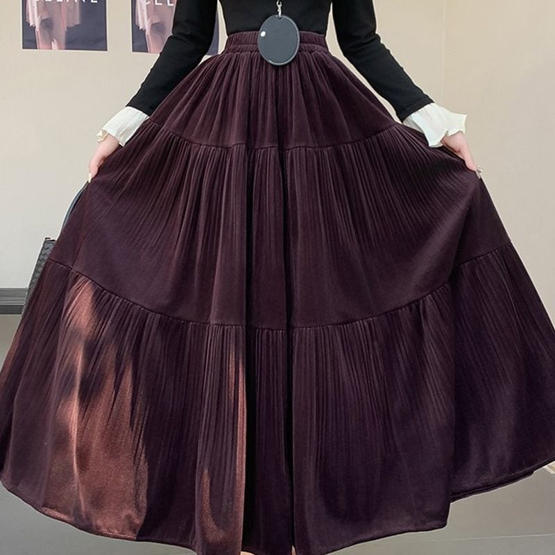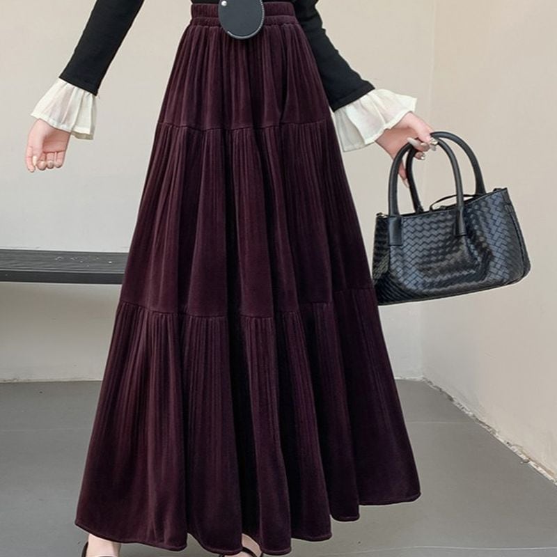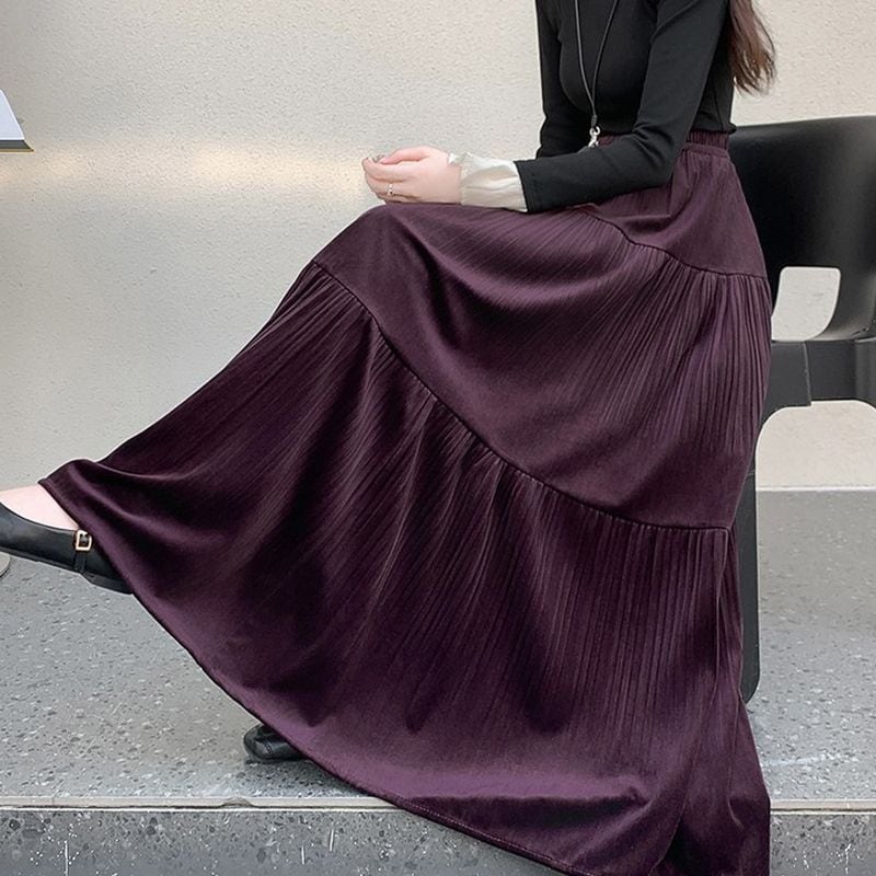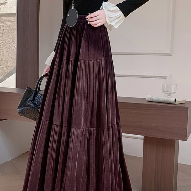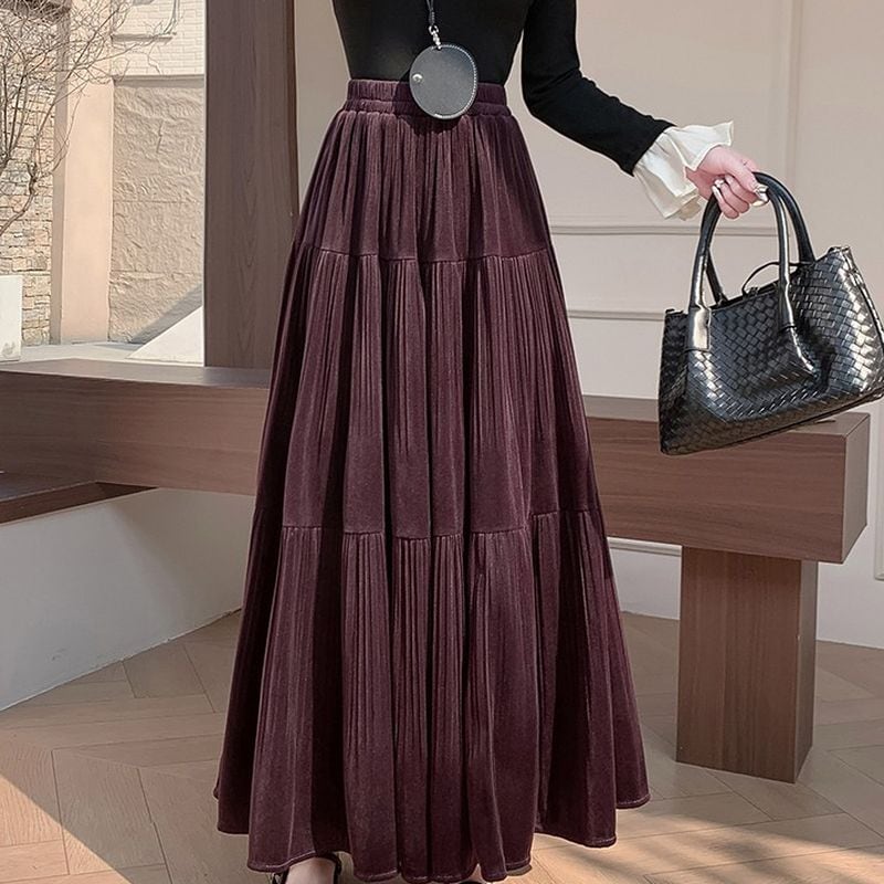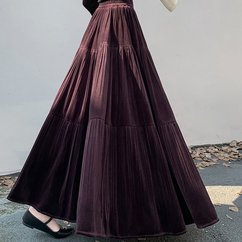 ベルベットプリーツ切り替えフレアスロングカート L1062