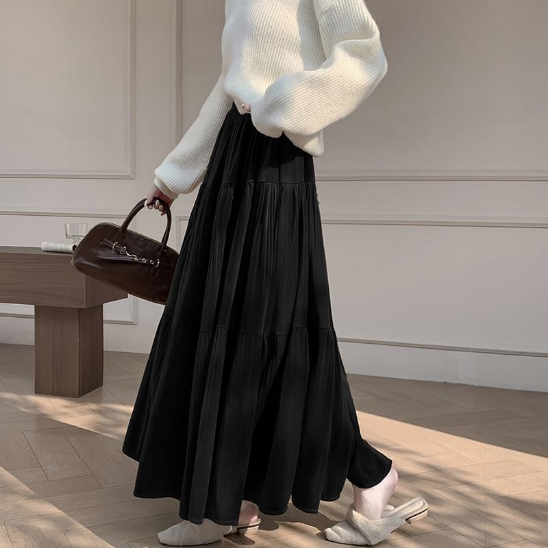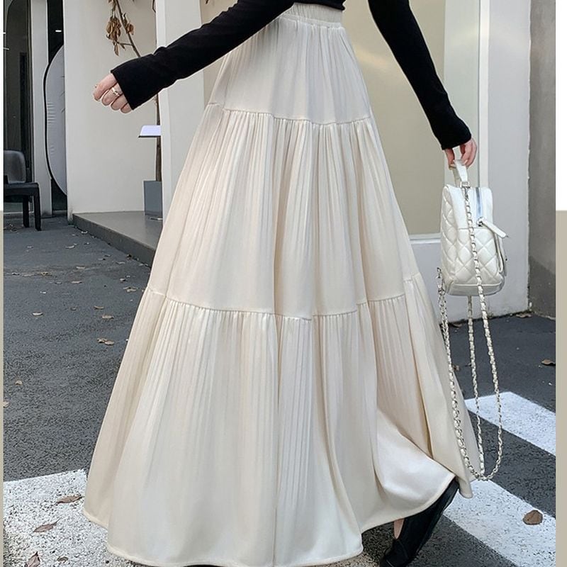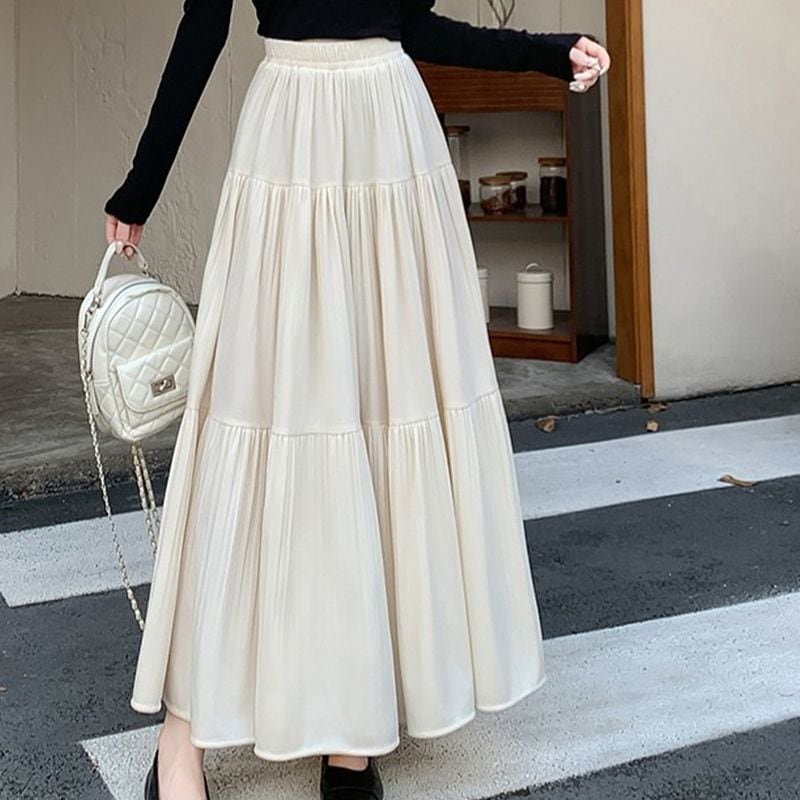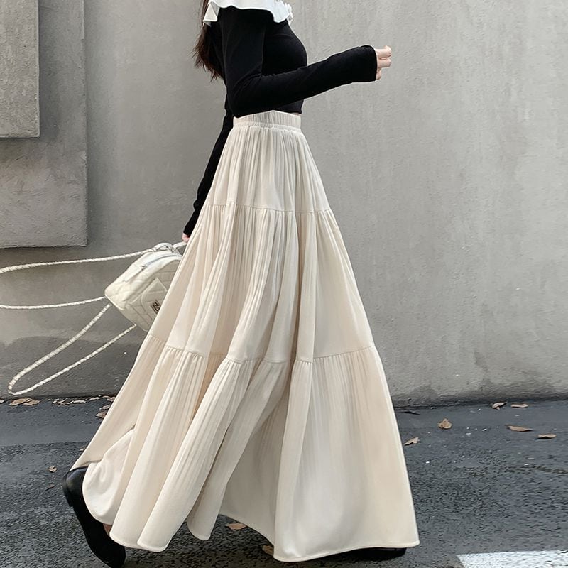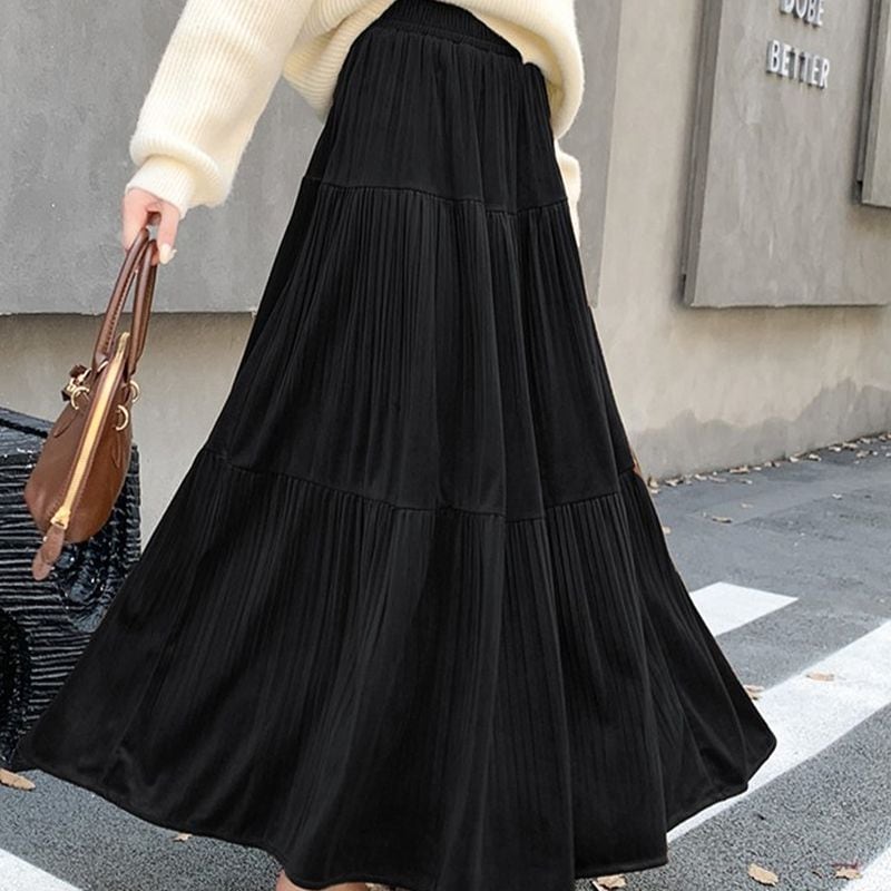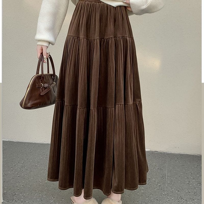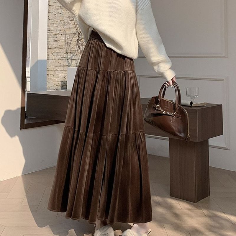 ベルベットプリーツ切り替えフレアスロングカート L1062