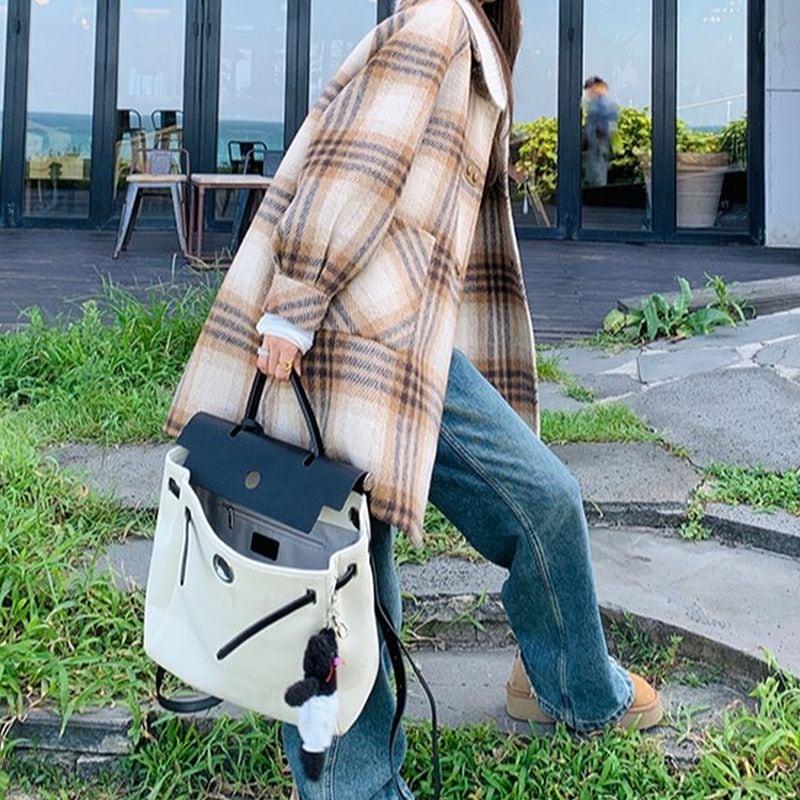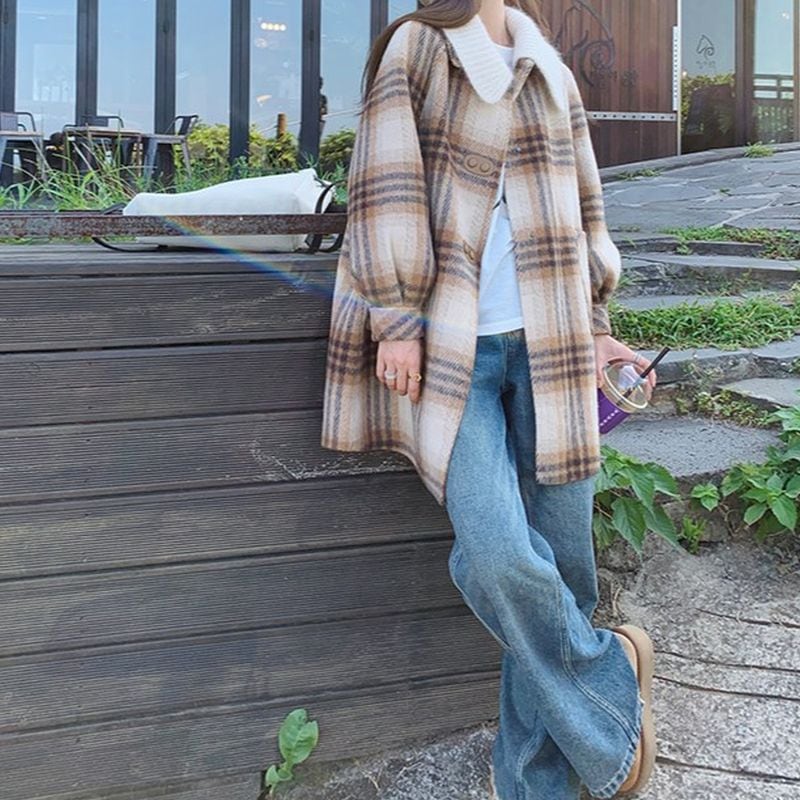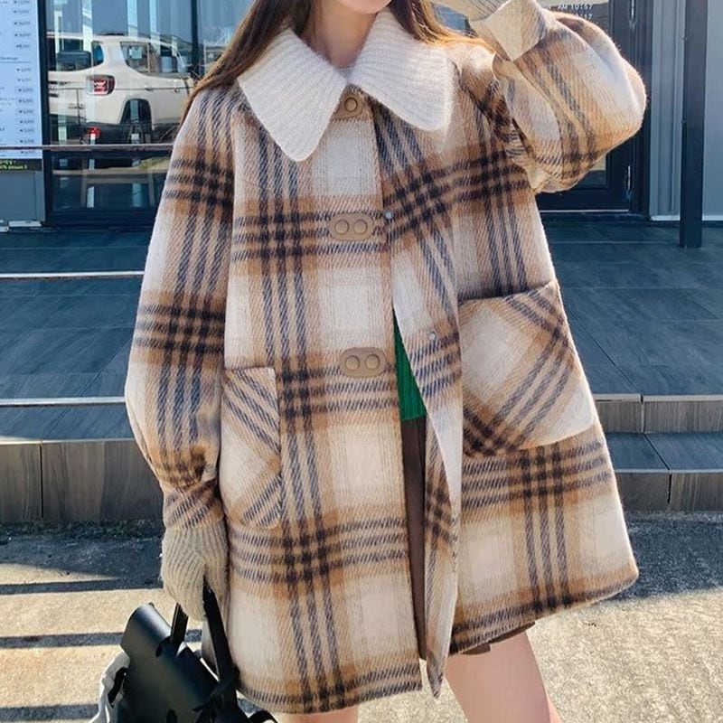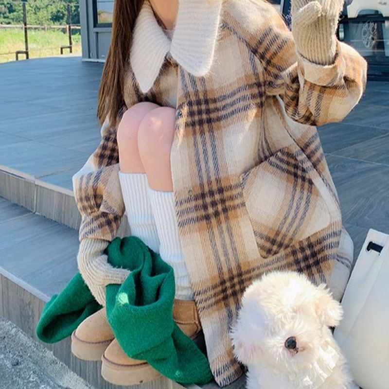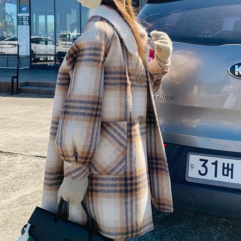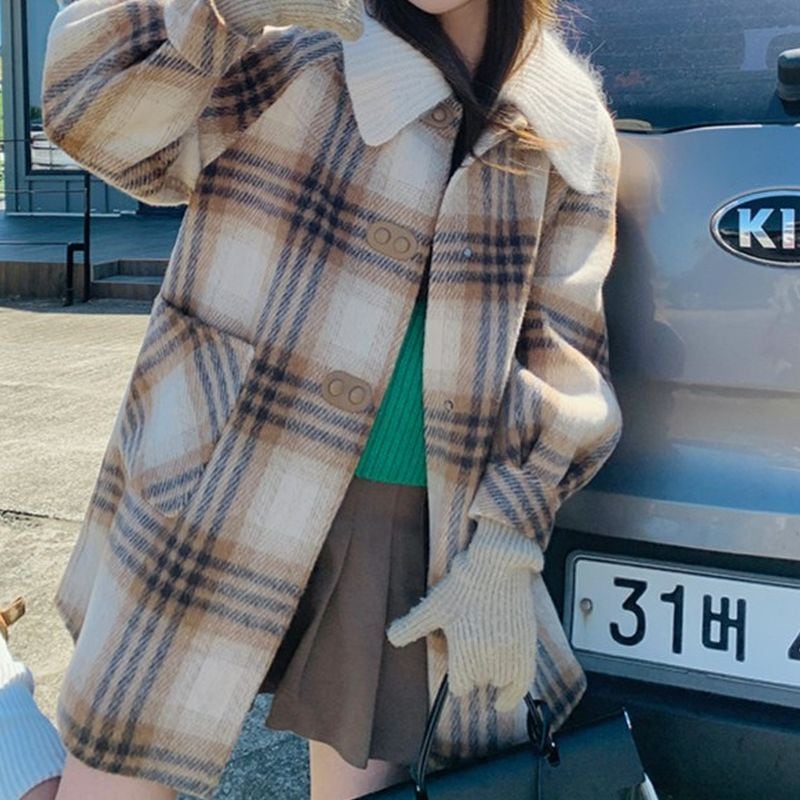ステンカラーレトロガーリーチェック柄コート L1080