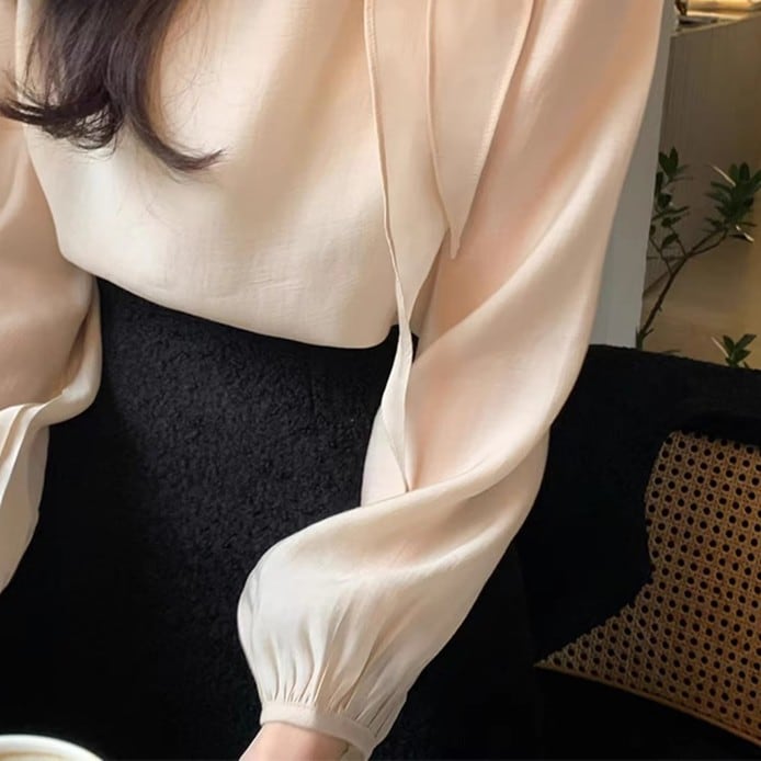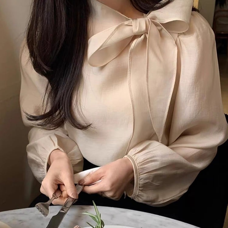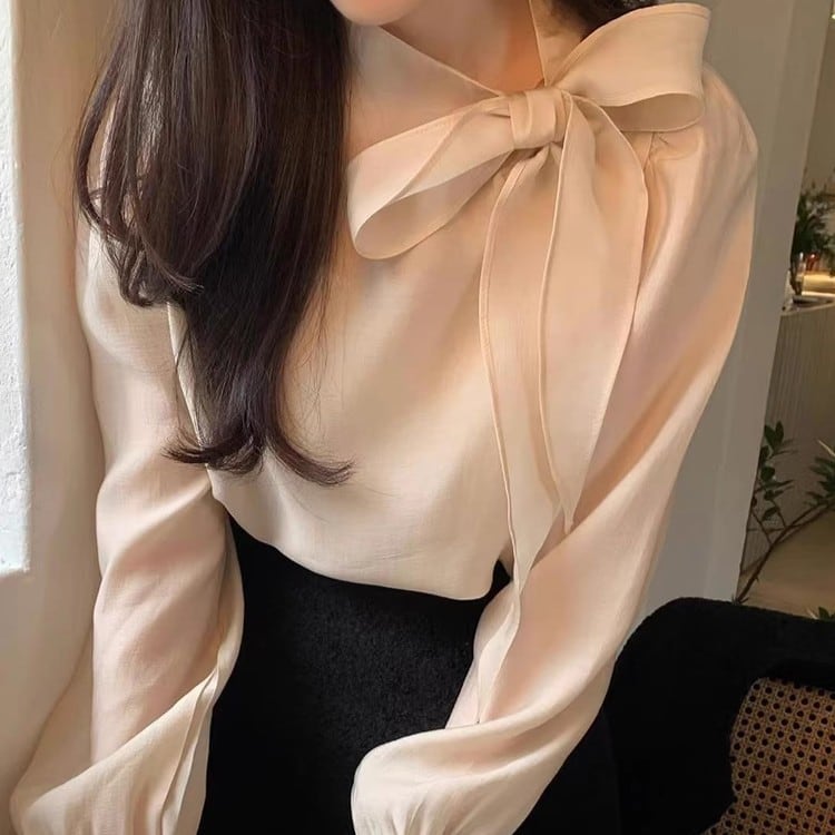首元に流れるようなボウタイがクラシックなフレンチムードを漂わせるブラウス。