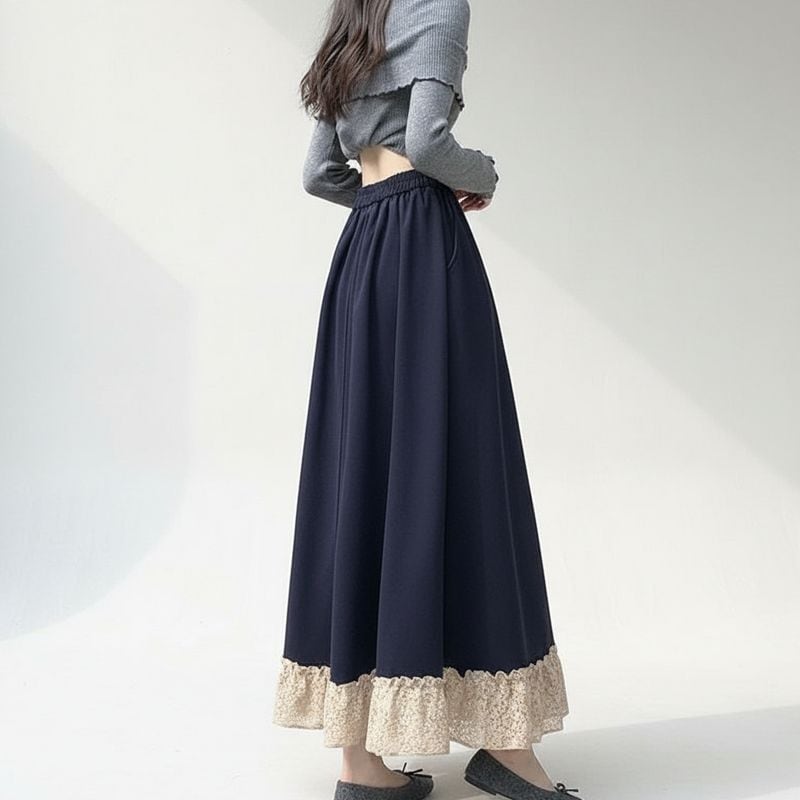 花柄裾レースAラインフレアスカート L1091