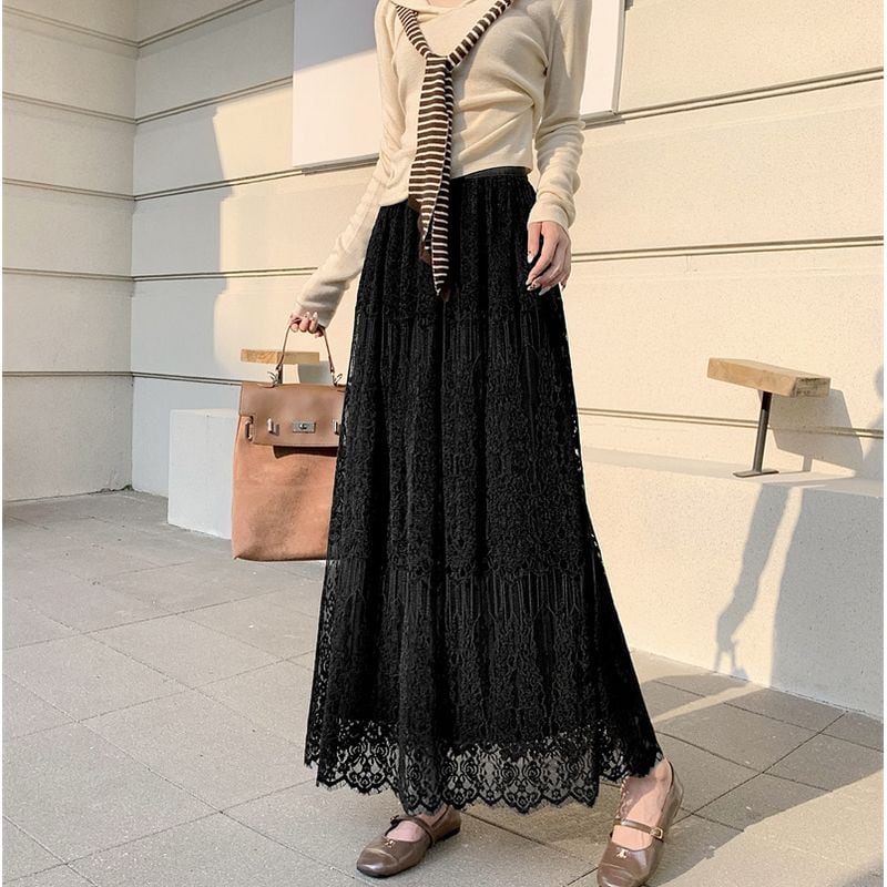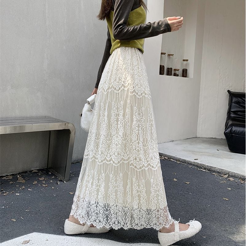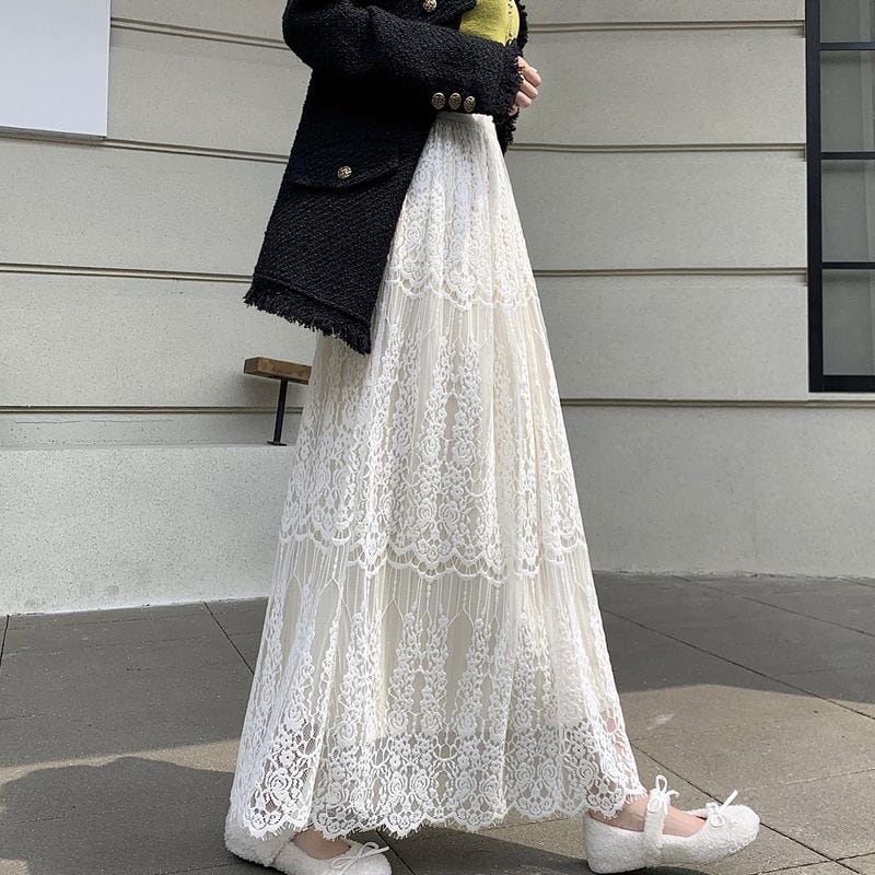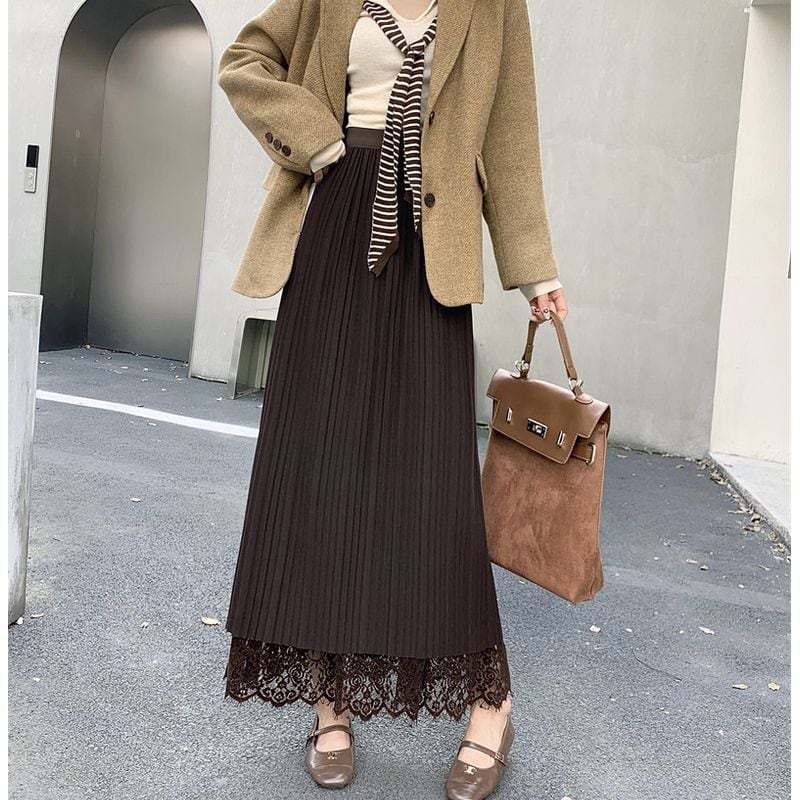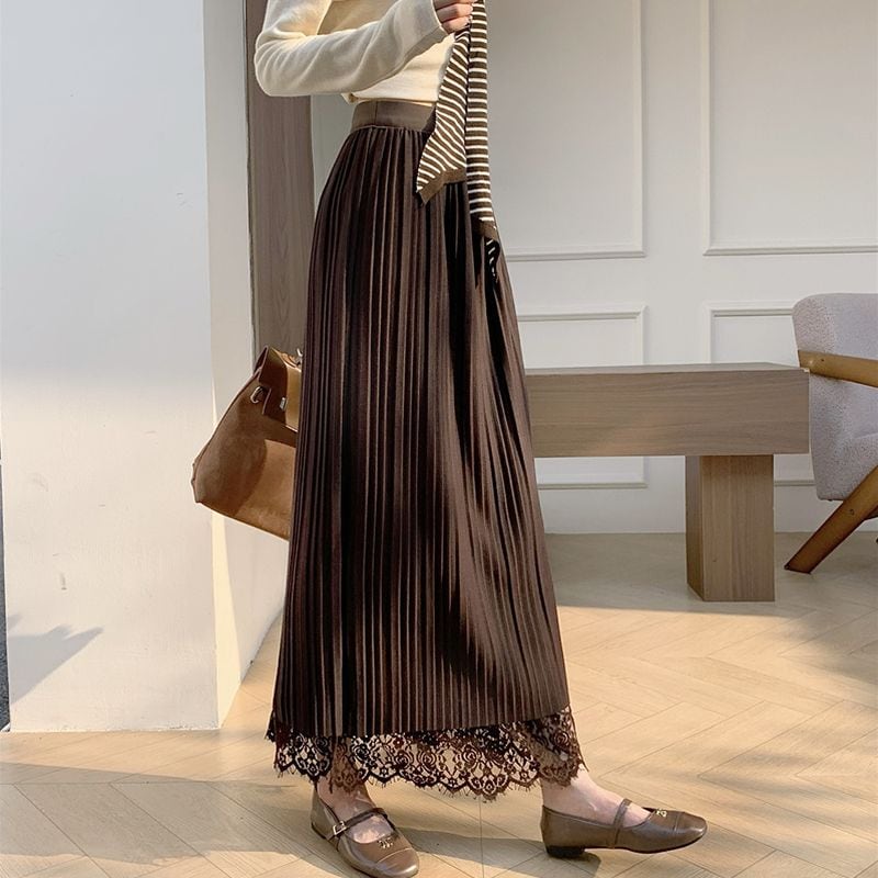 総レース&プリーツリバーシブルスカート L1092