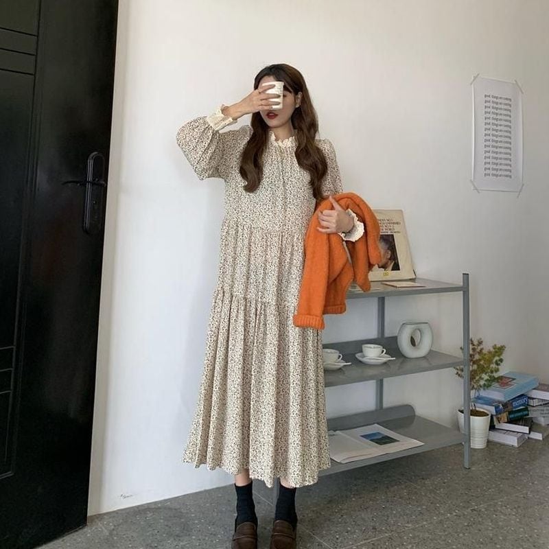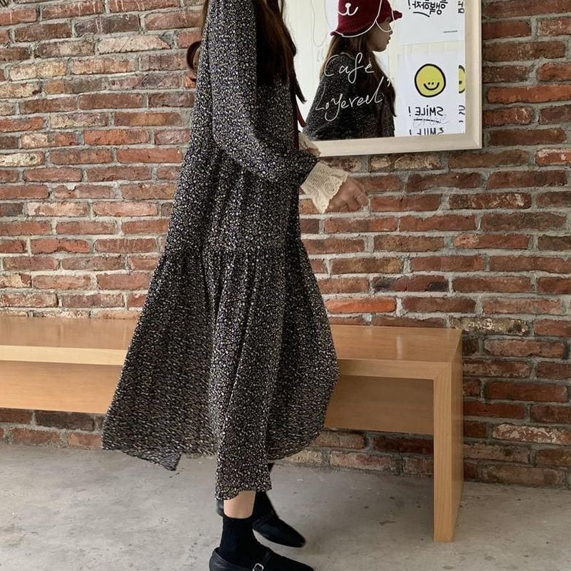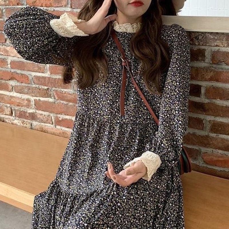 女性らしさを引き立てる繊細な花柄レースと軽やかなティアードシルエットが魅力のワンピース。
