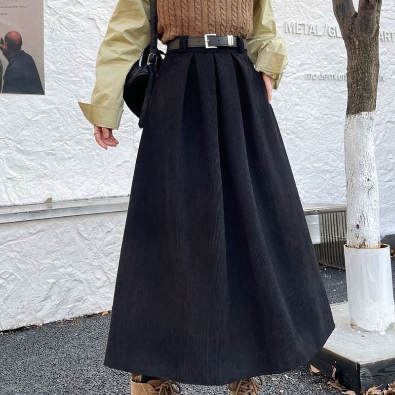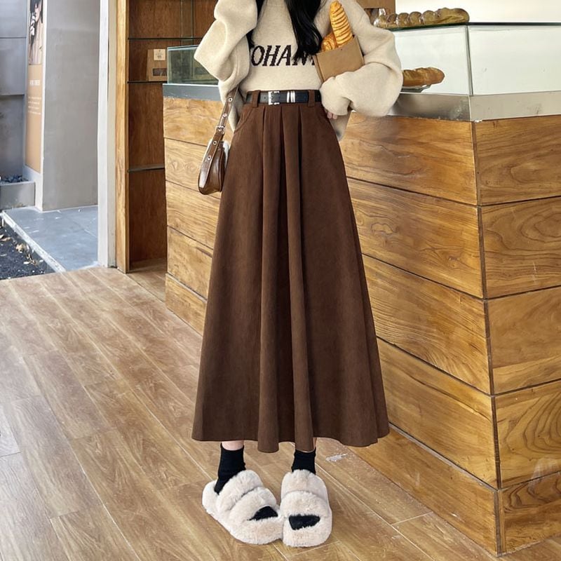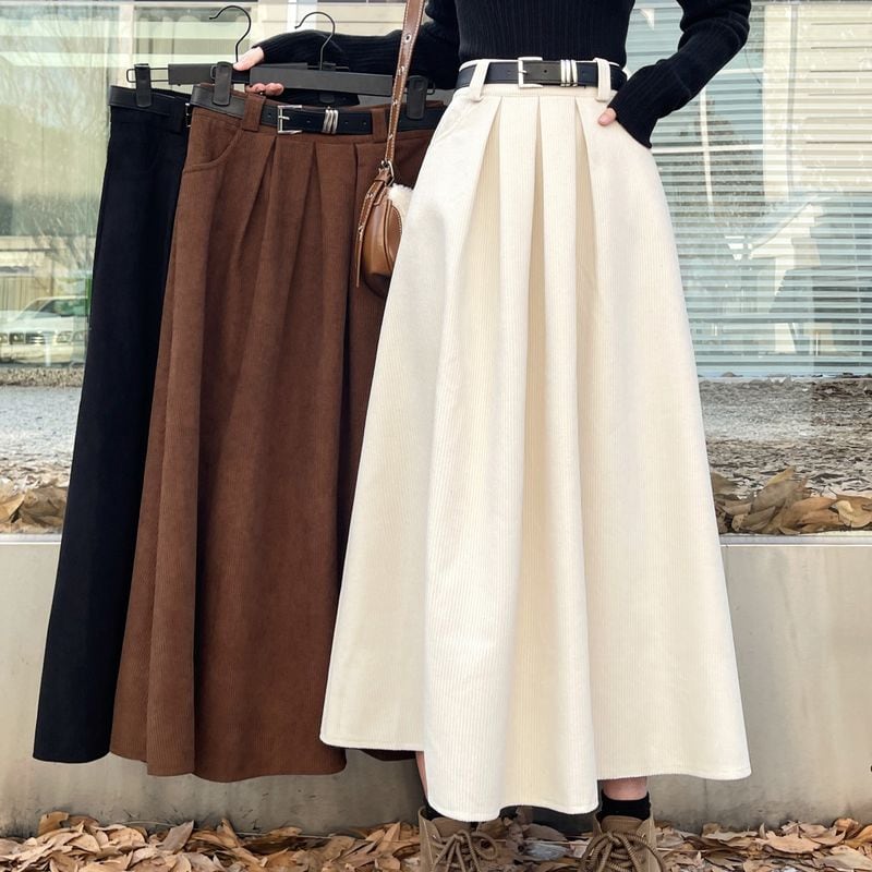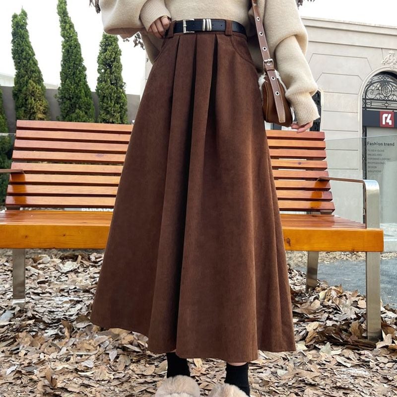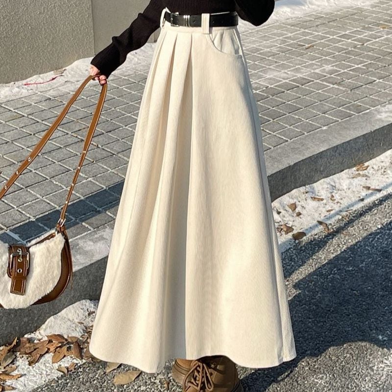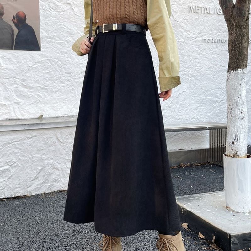 季節感のある柔らかなコーデュロイ素材を使用した、上品なロングスカート。