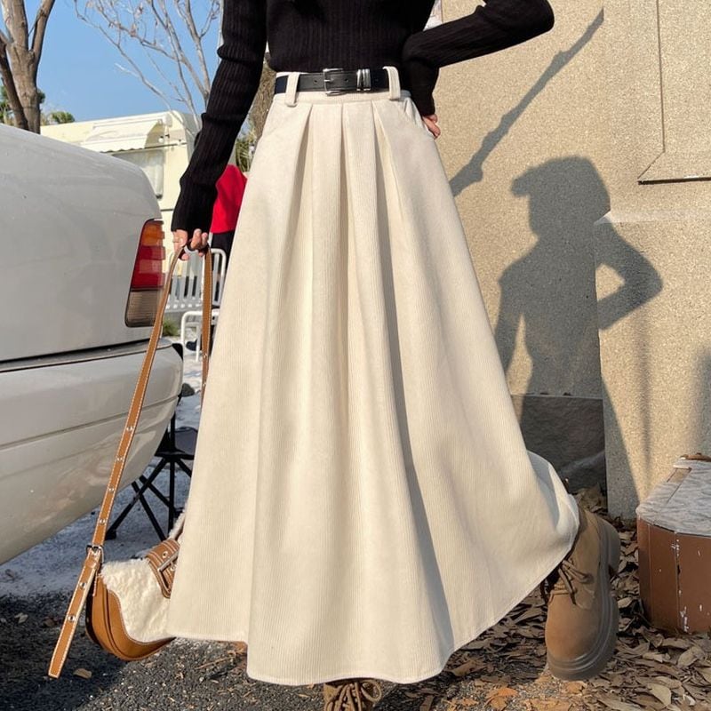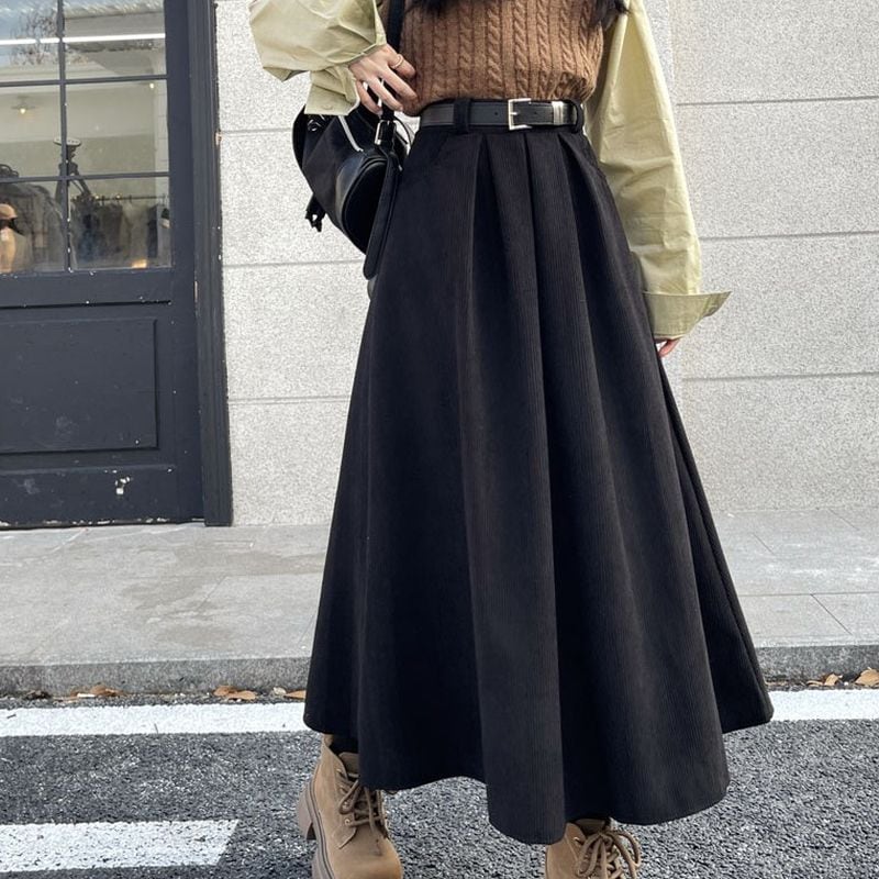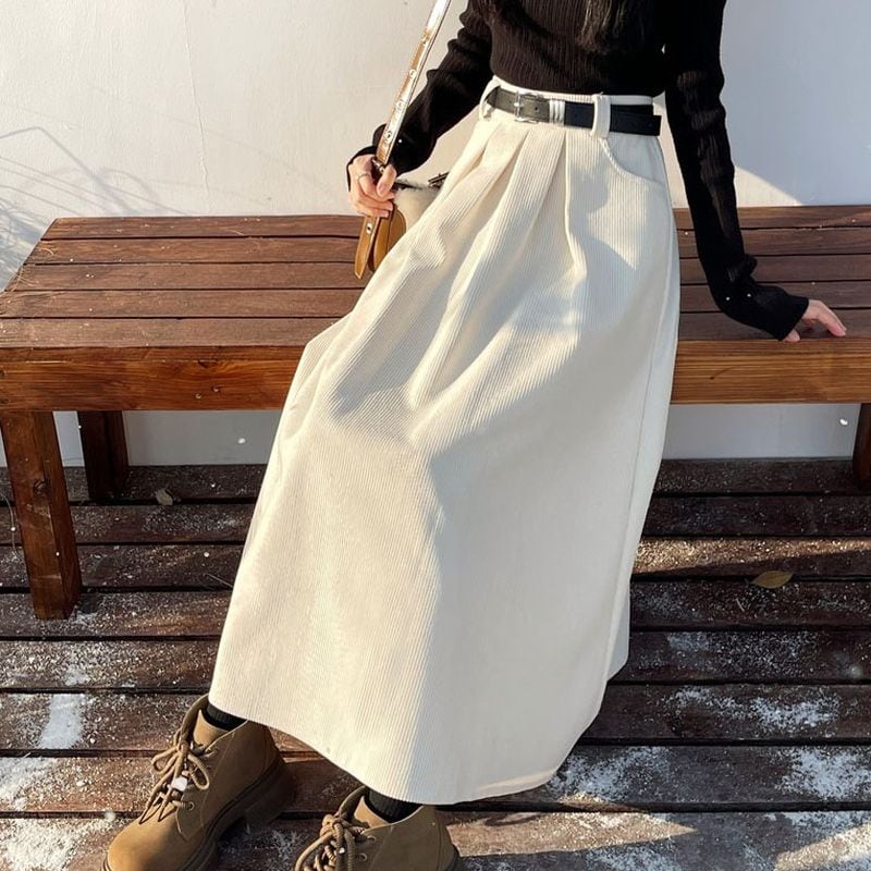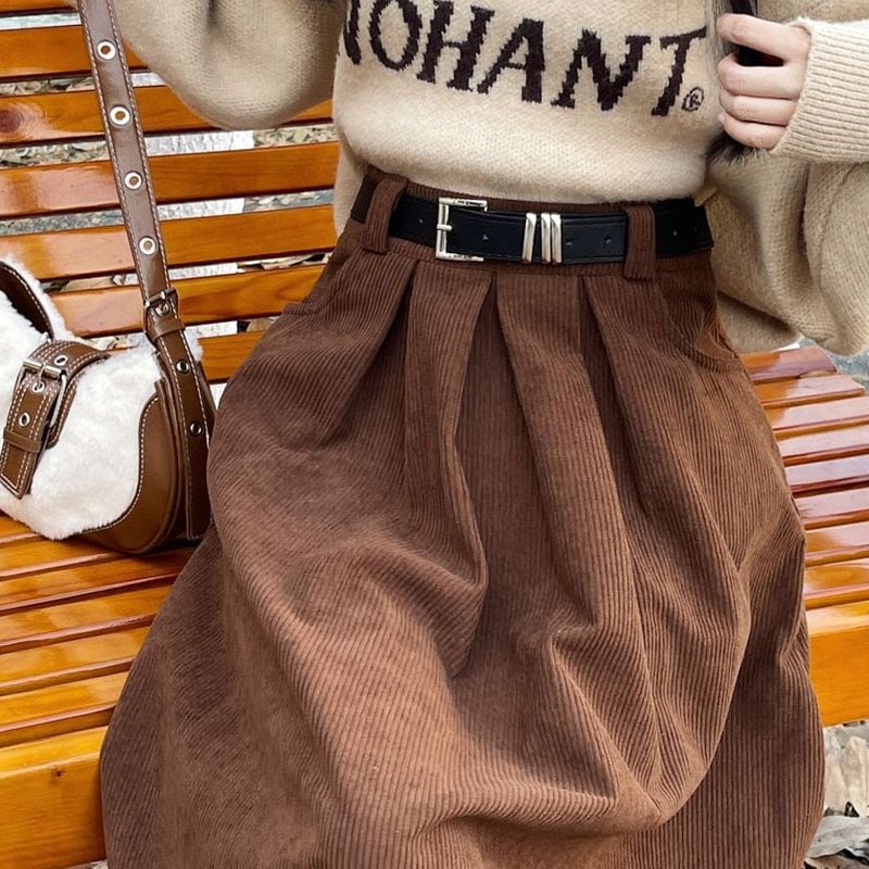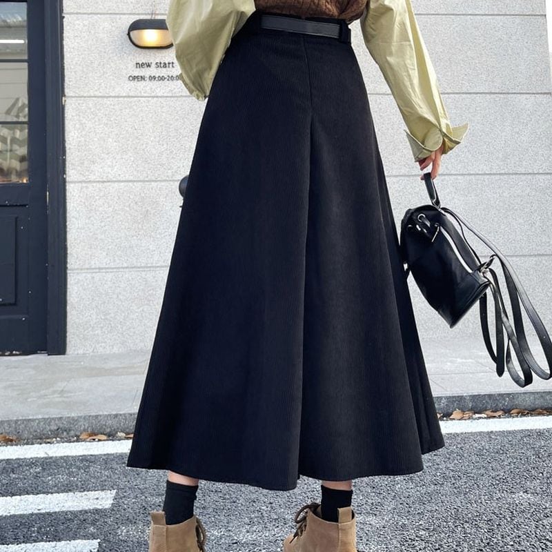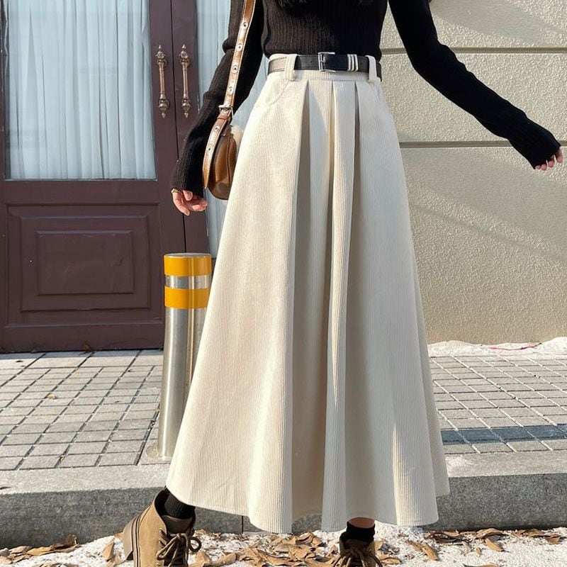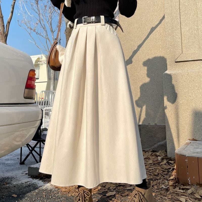 季節感のある柔らかなコーデュロイ素材を使用した、上品なロングスカート。