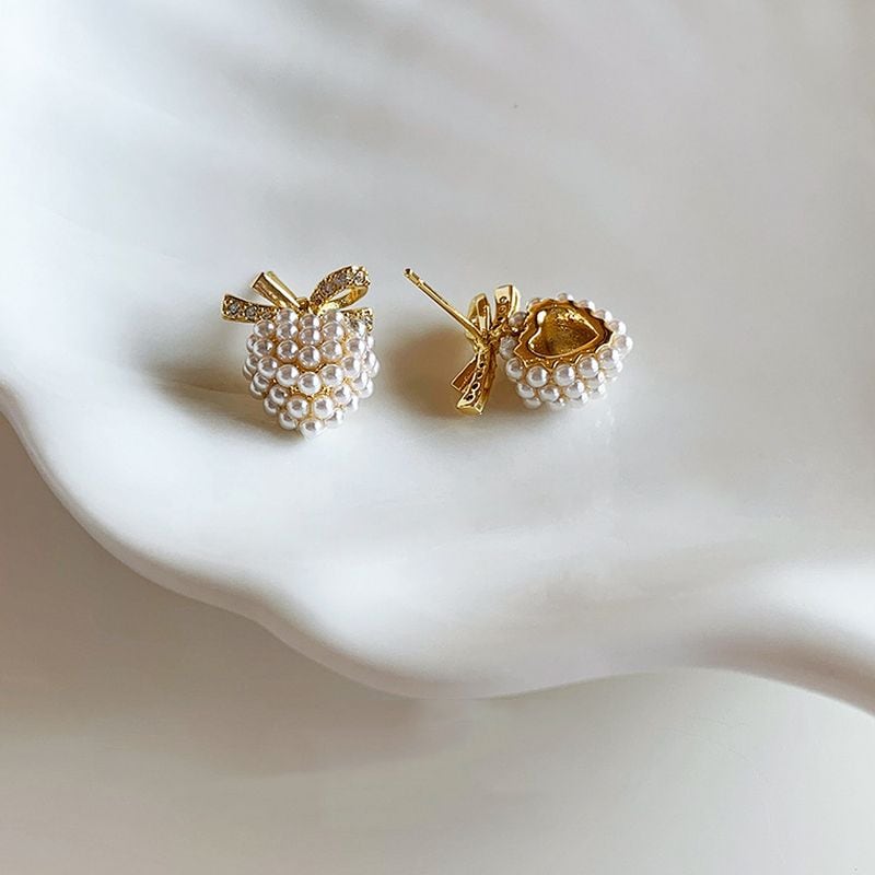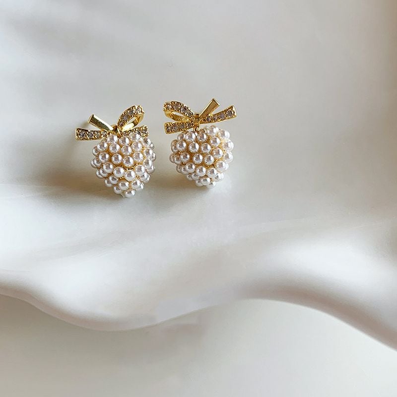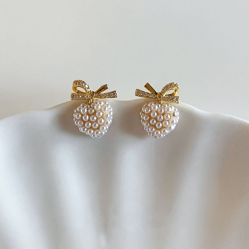ハート×リボン×パールが織りなす、大人可愛いをぎゅっと詰め込んだスタッドピアス。