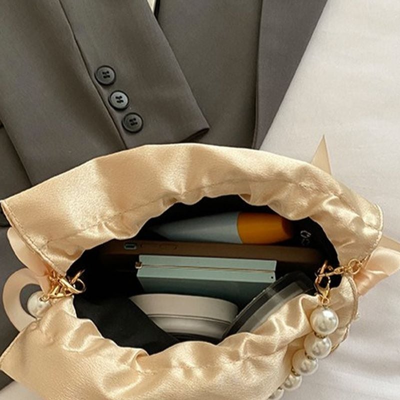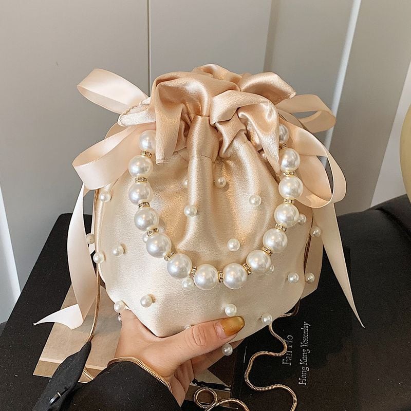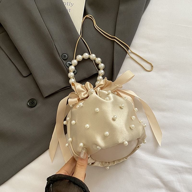 パールハンドル巾着ドローストリングミニバッグ L1107