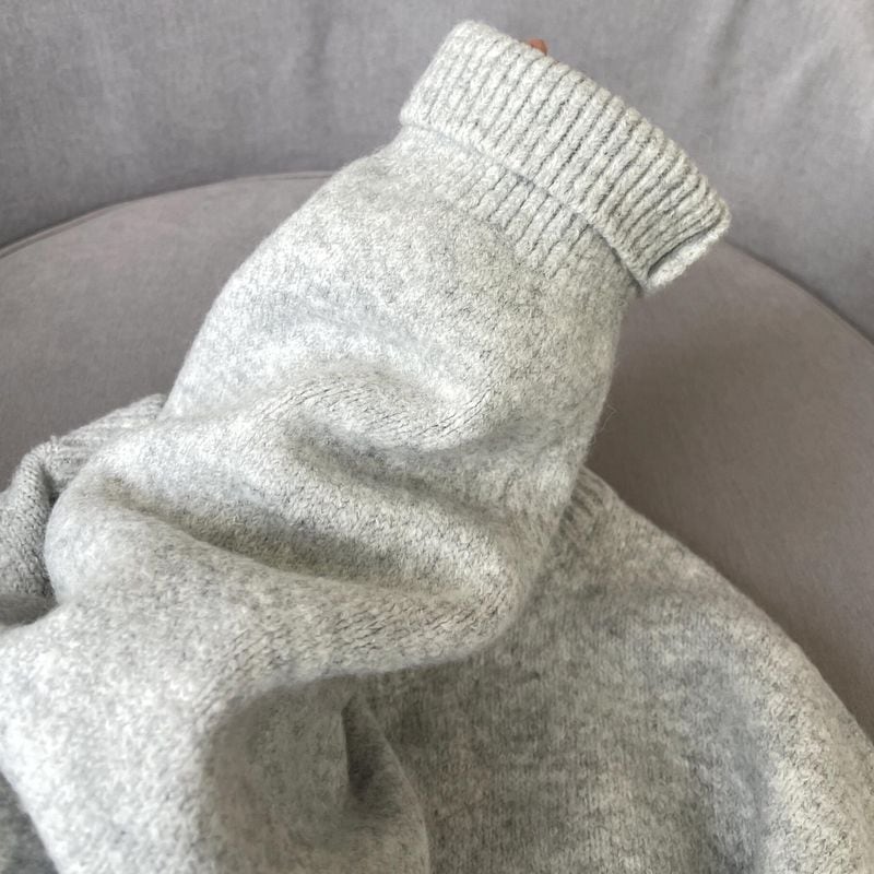 さりげないロゴデザインと、ふんわりとしたボリュームスリーブが目を惹くリブニットセーター。