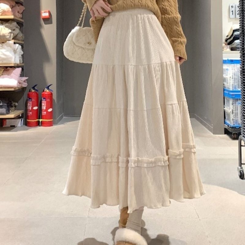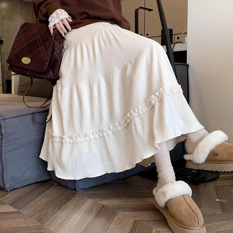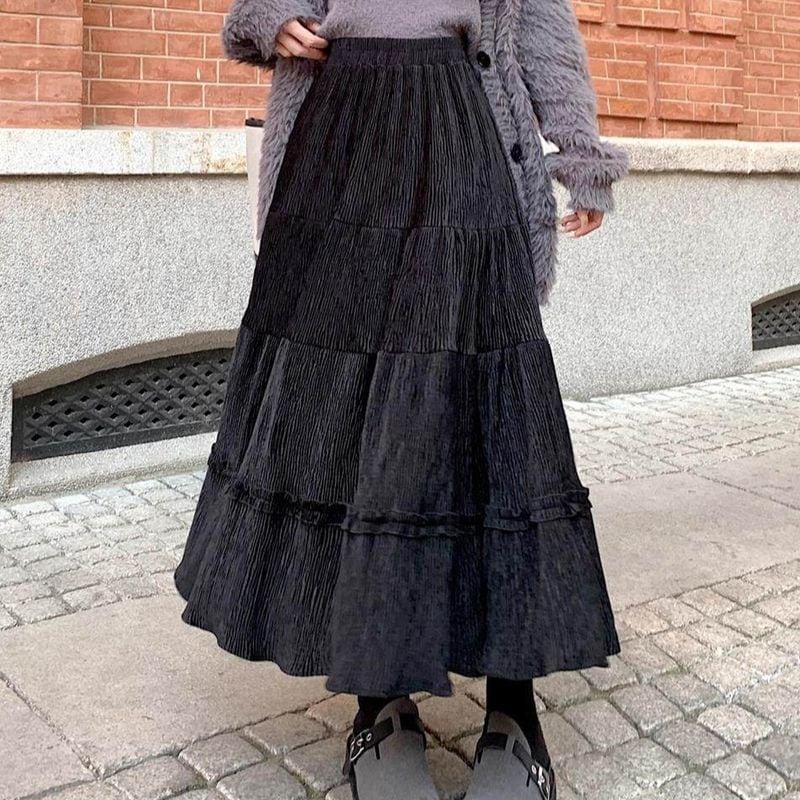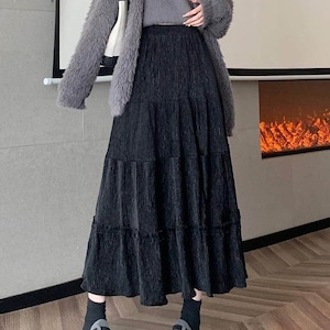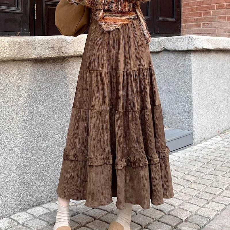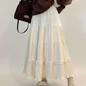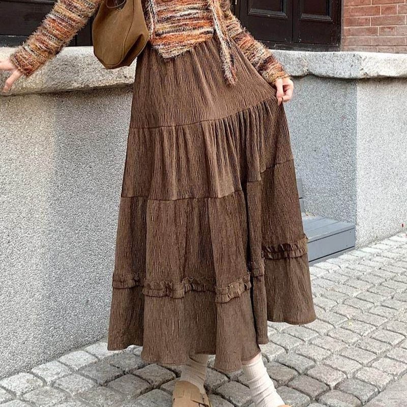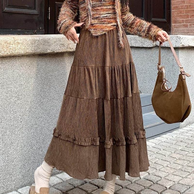 程よい甘さと落ち着いた雰囲気をあわせ持つ、ティアードデザインのロングスカート。