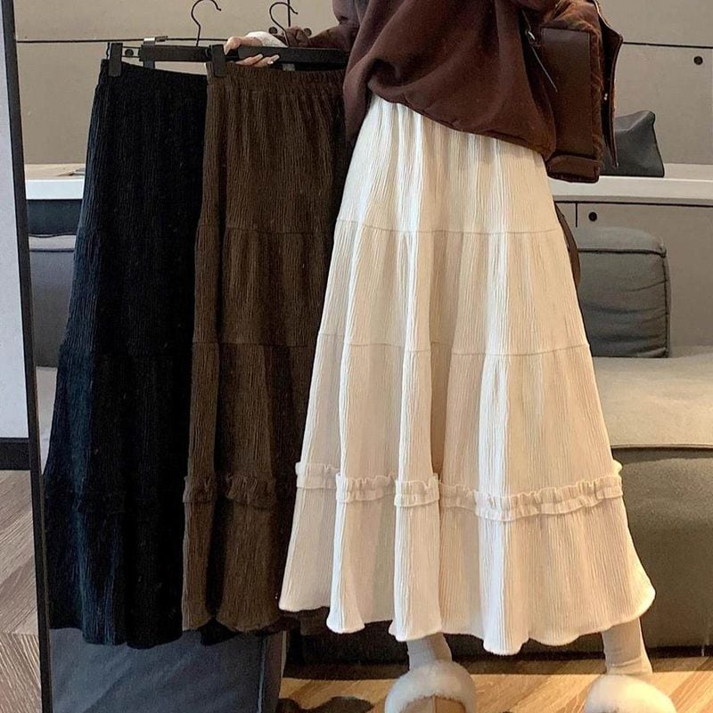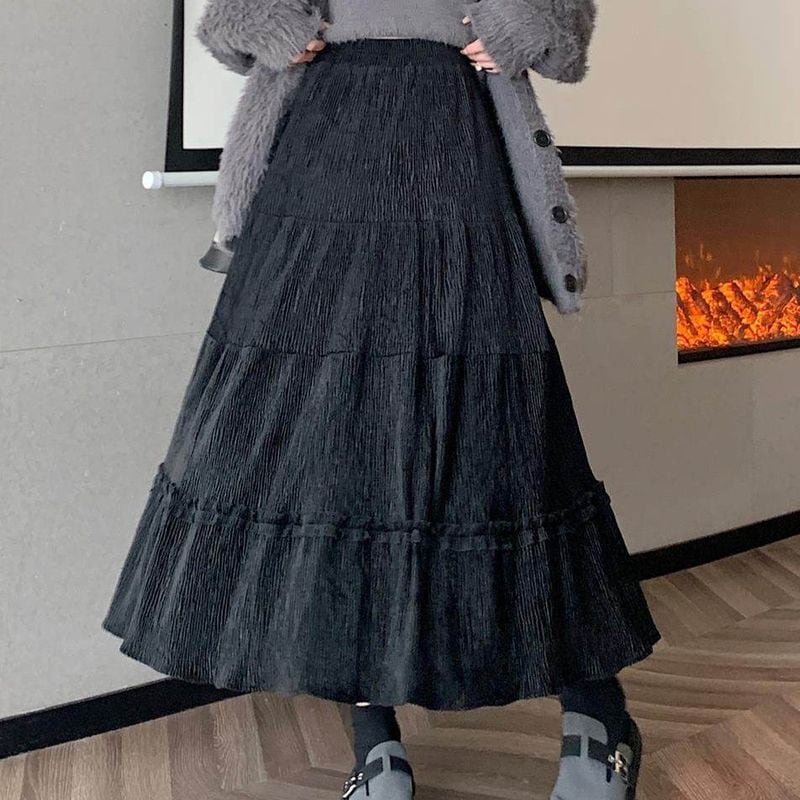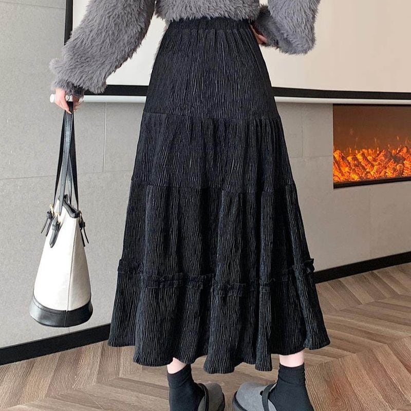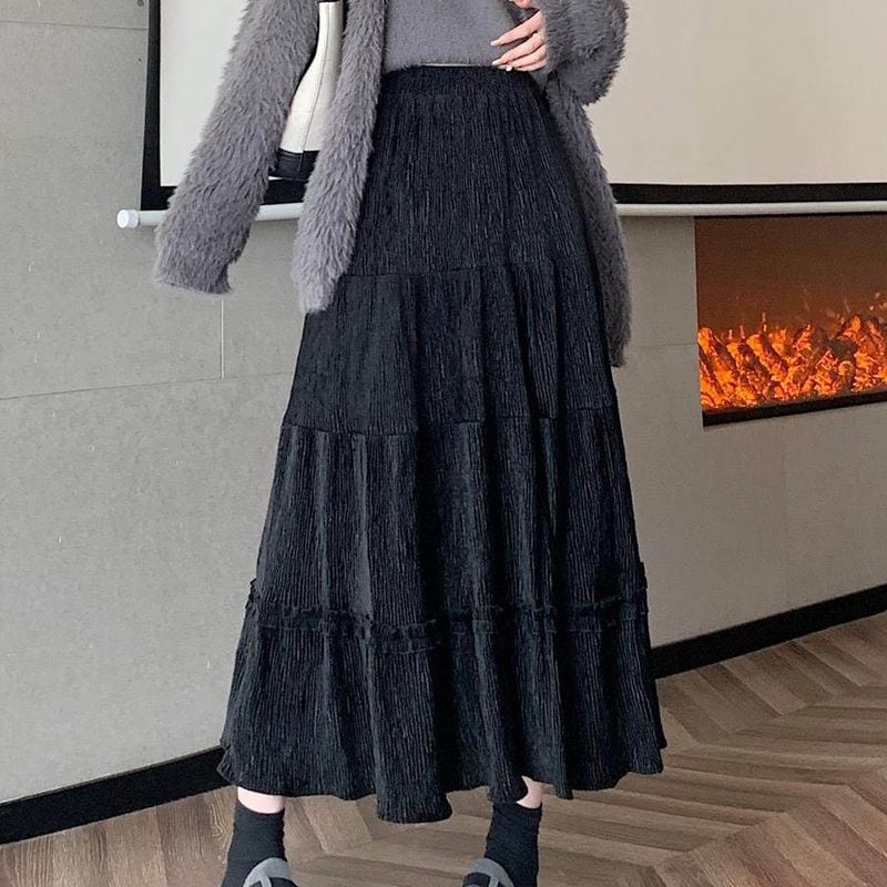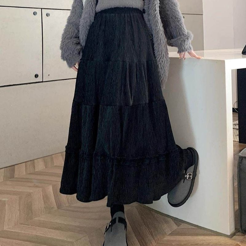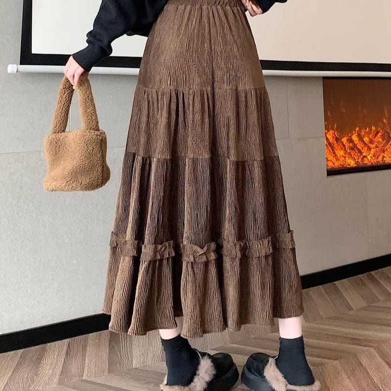 程よい甘さと落ち着いた雰囲気をあわせ持つ、ティアードデザインのロングスカート。