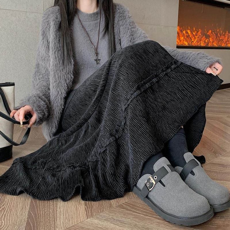 ロング丈でも重たく見えにくく、シーズンを通して楽しめる大人可愛いスカートです。