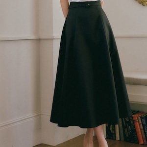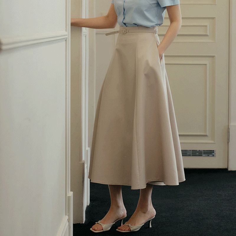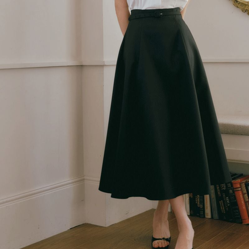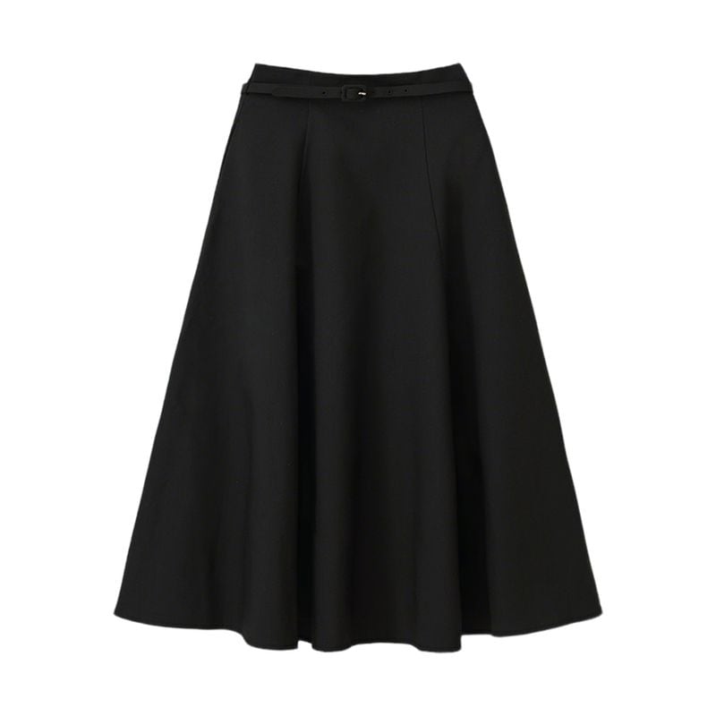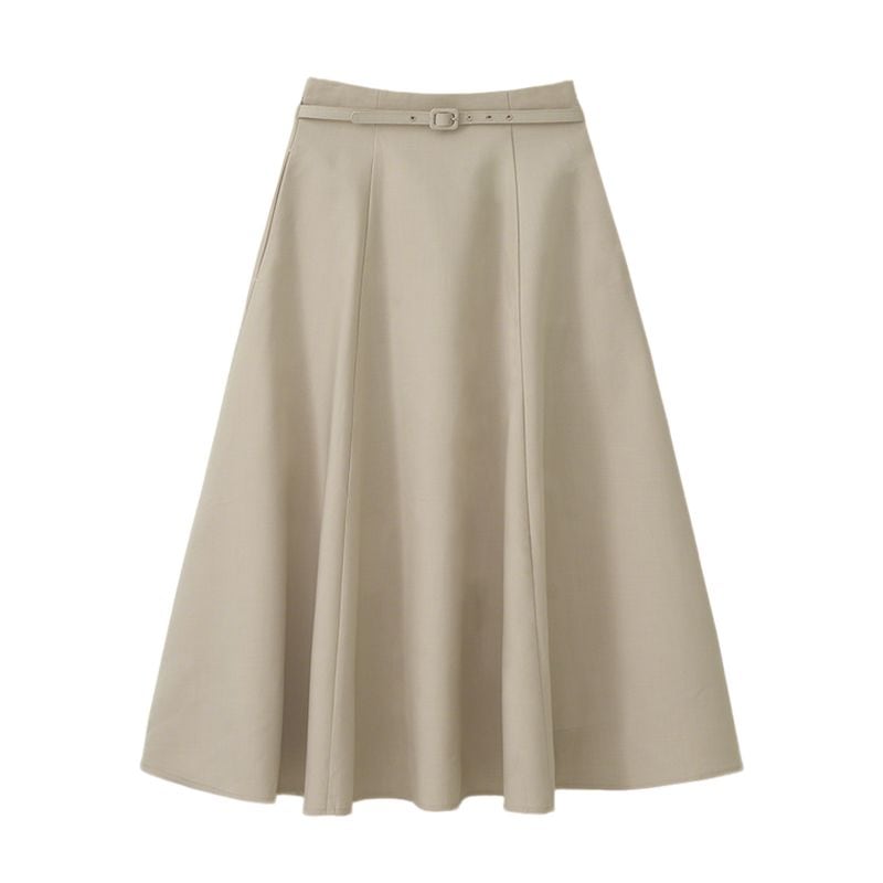 ハイウエストデザインでスタイルアップが叶う、ベルト付きタックフレアスカート。