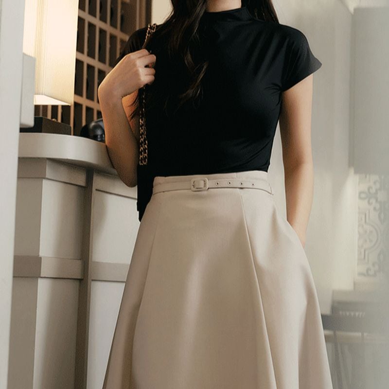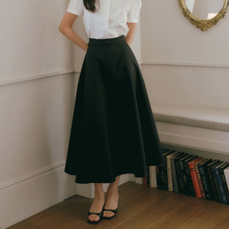 ベルト付きハイウエストタックフレアスカート L1132