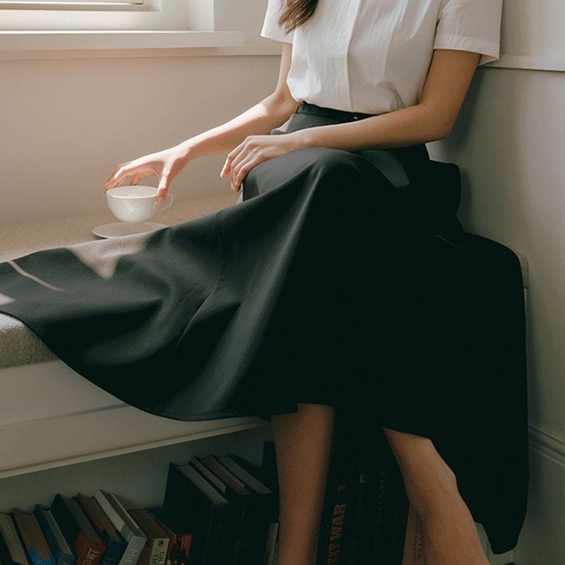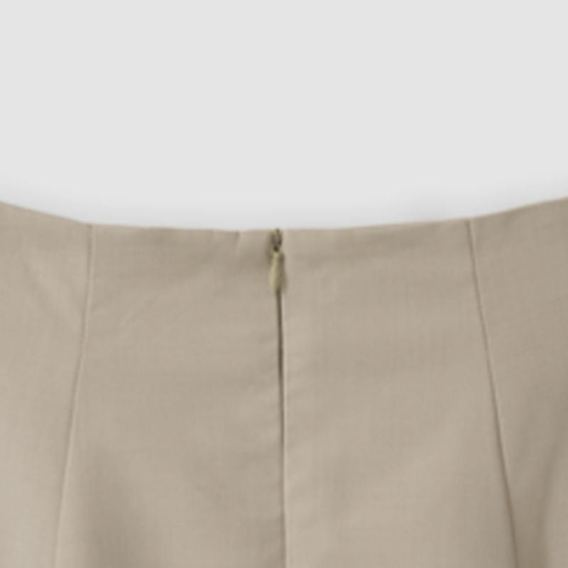 程よいハリ感とタックラインで甘くなりすぎず大人っぽく着用いただけます。