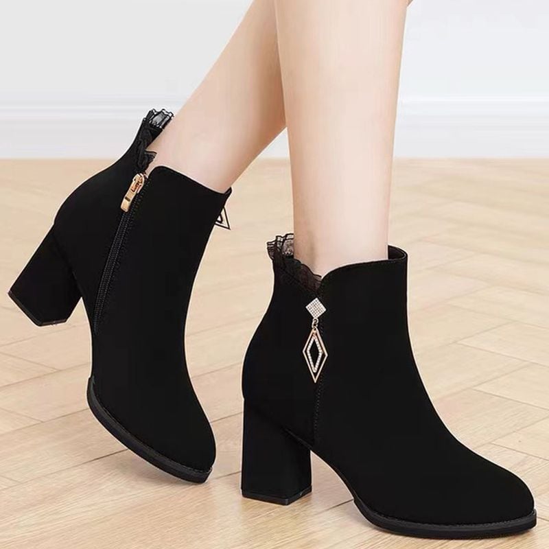 ジップモチーフレースアップショートブーティ L1134