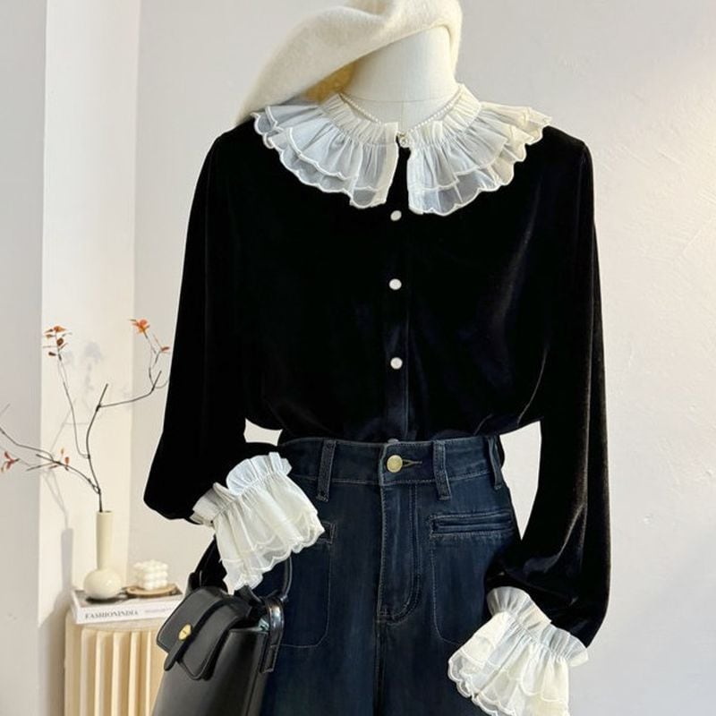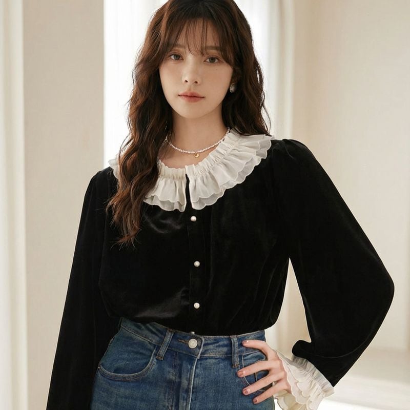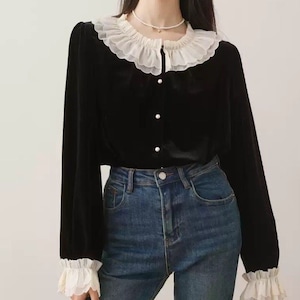 フリルカラーベロアブラウス L1141
