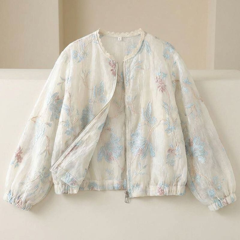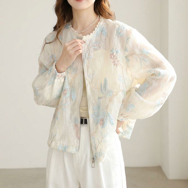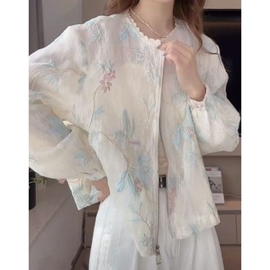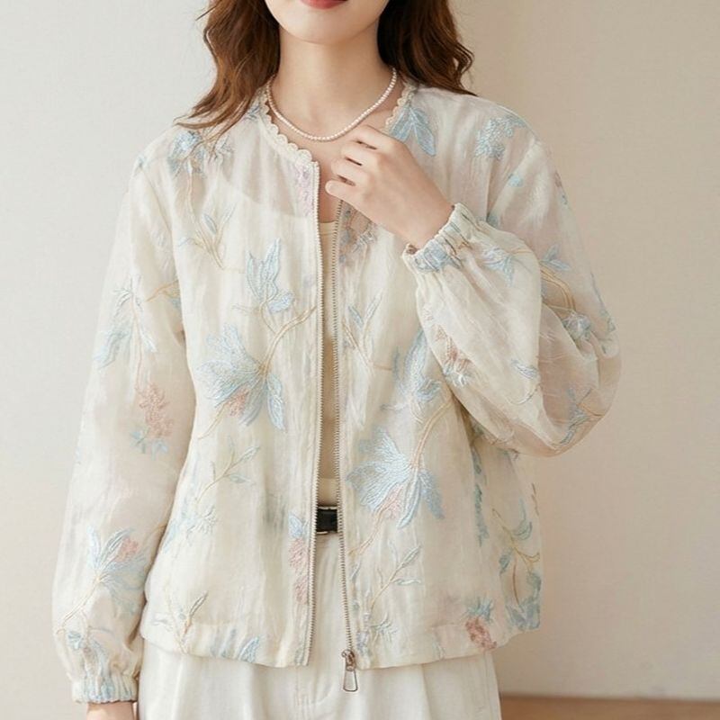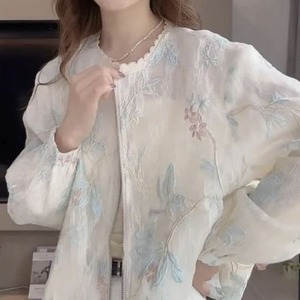 レースネック花刺繍シアーブルゾン L1157