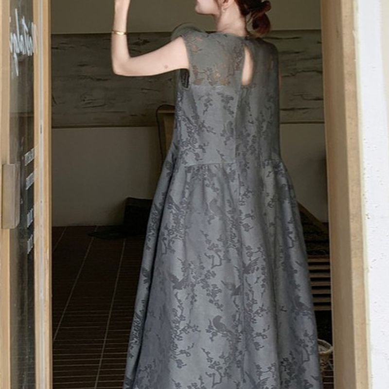 立体感のあるジャガード素材が目を惹く、上品で華やかなノースリーブワンピース。