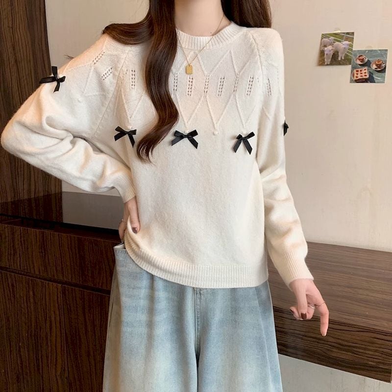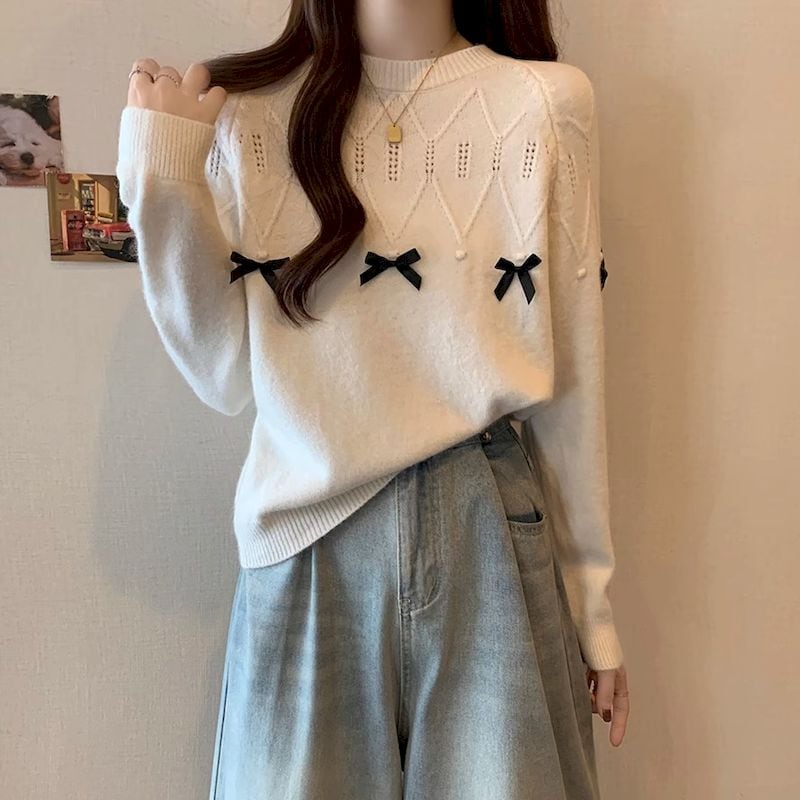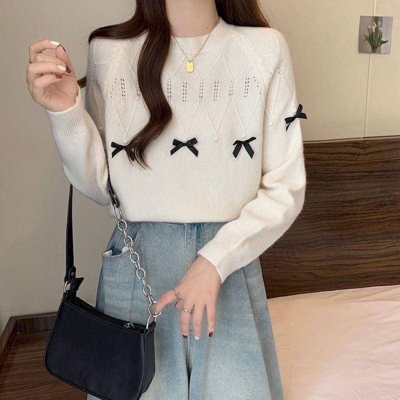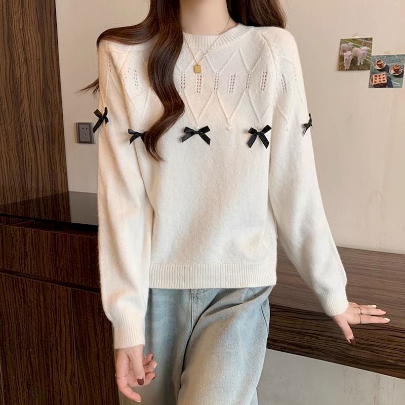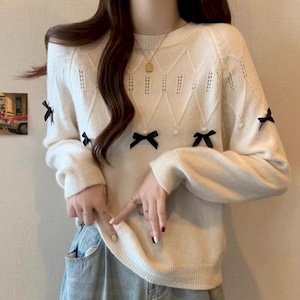 小ぶりなリボンが可愛いフェミニンな雰囲気のトップス♡