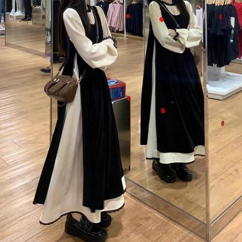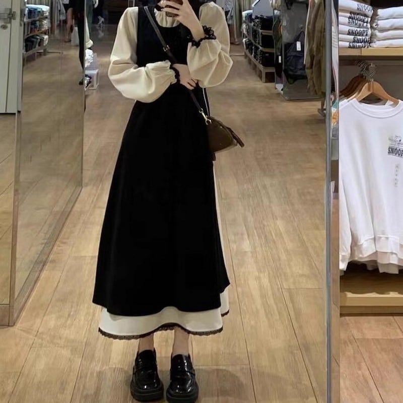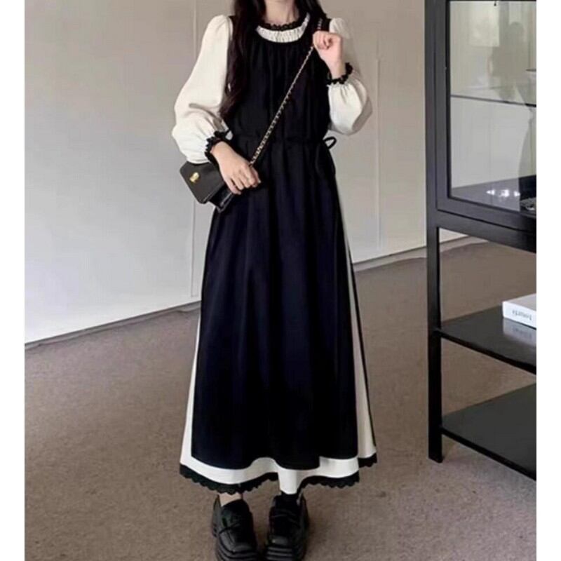 【2点セット】レースギャザーロングワンピ+サイドスリットジャンスカ L0310
