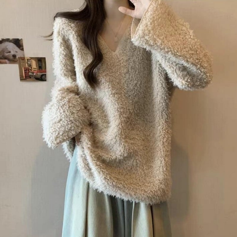ゆったりとしたシルエットが魅力のオーバーサイズVネックシャギー。