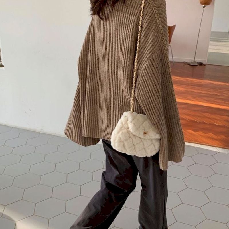 冬らしくファーをまとった小柄で愛らしいポシェット。