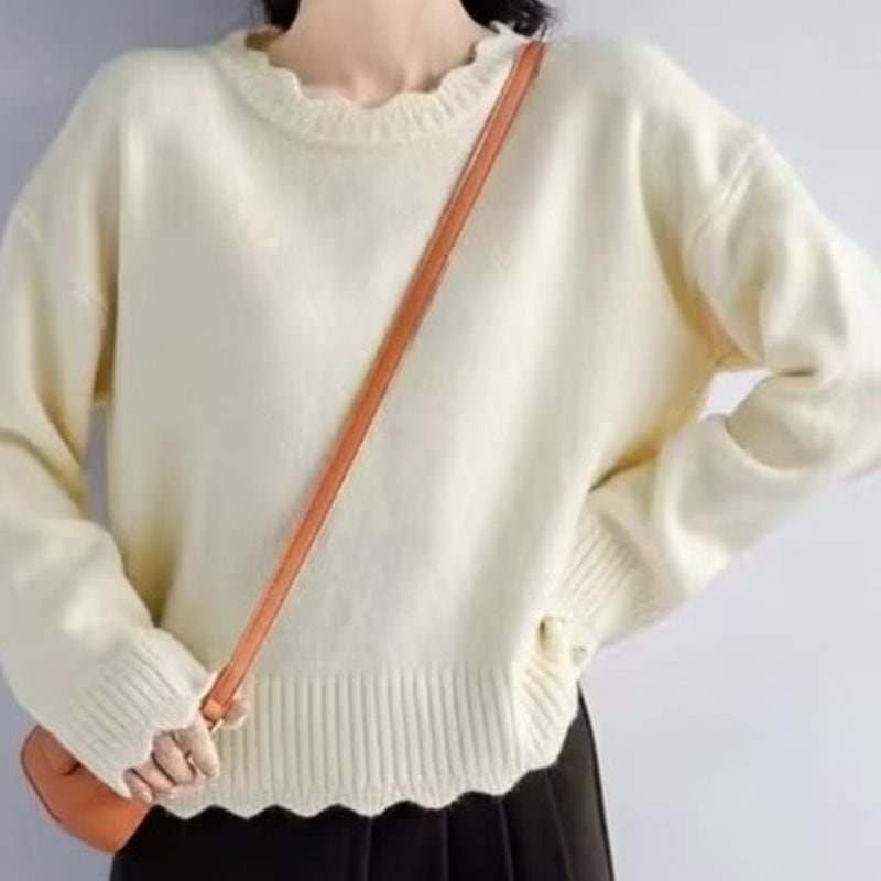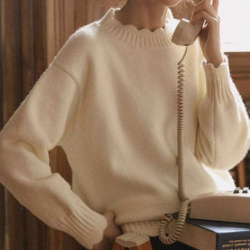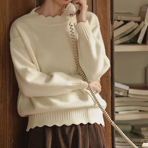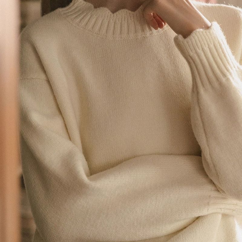 リブ編み仕様の袖口は、腕周りを華奢に演出してくれ顔周りをスッキリ綺麗に魅せてくれます◎