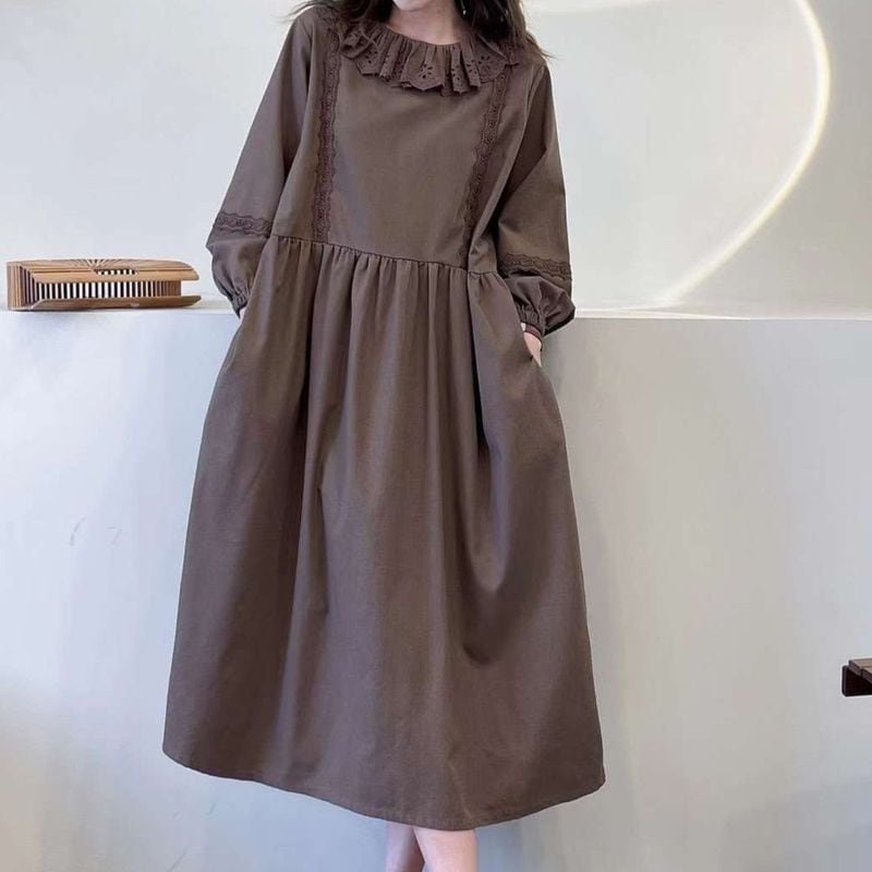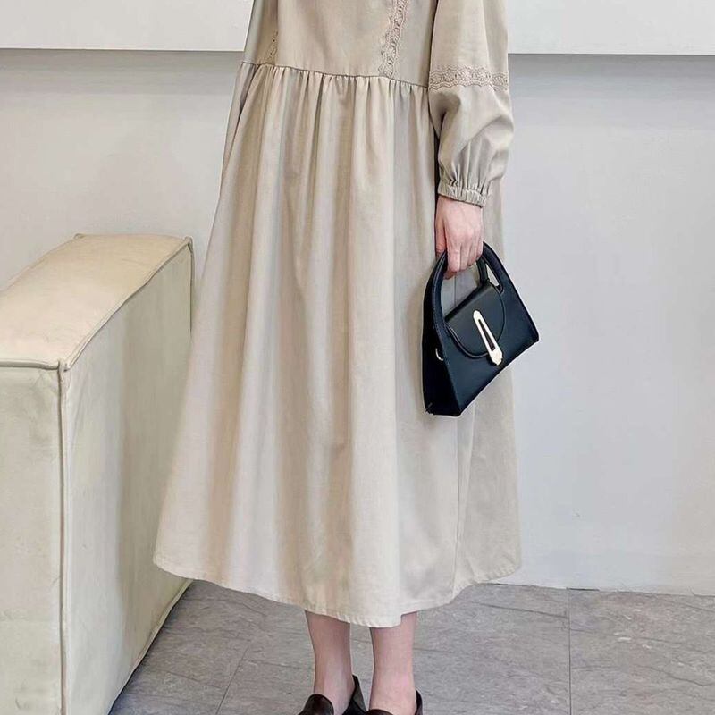 ふんわり広がるスカートシルエットに襟元のレースで上品さをアピール♡