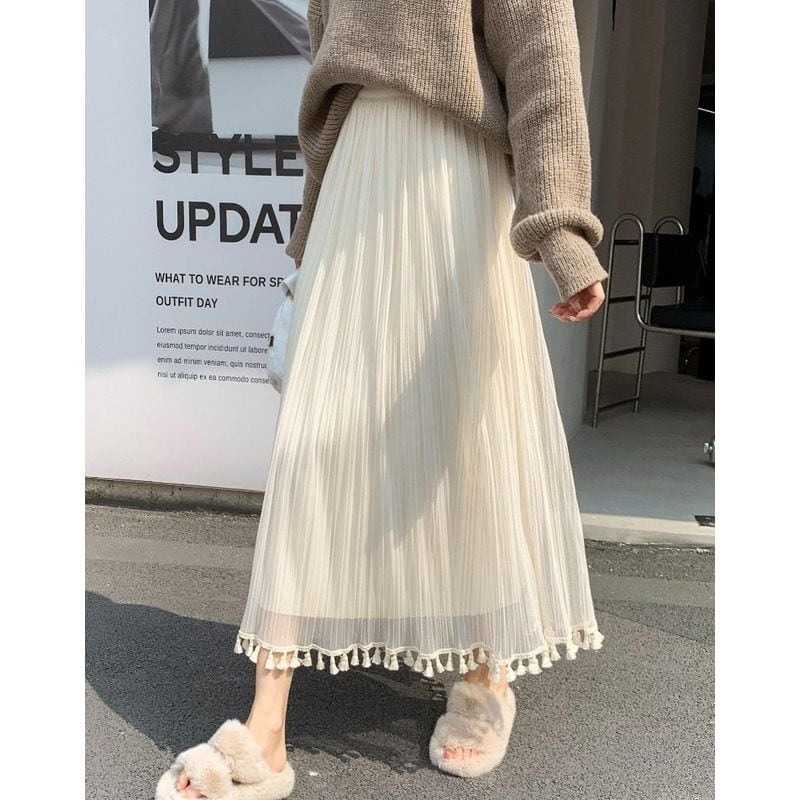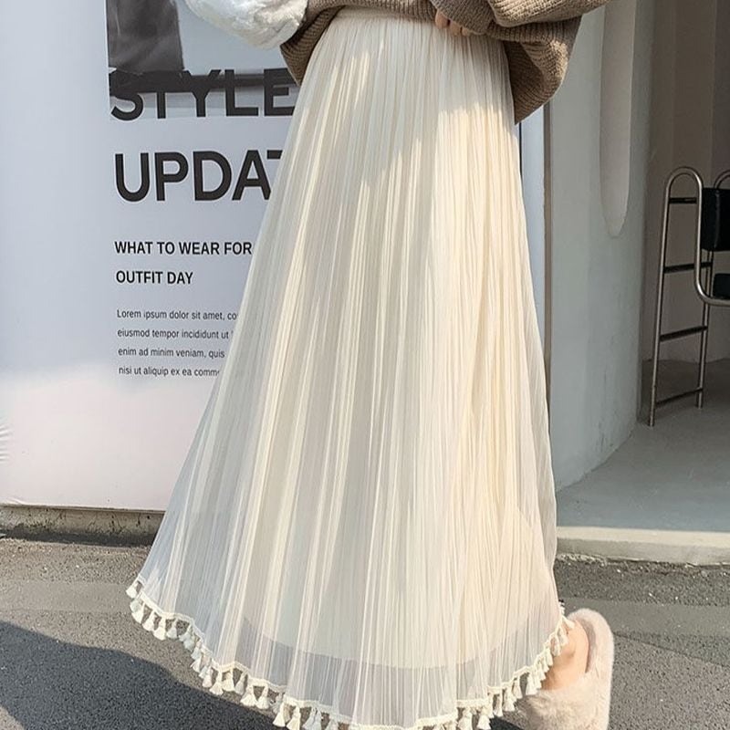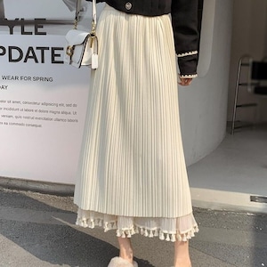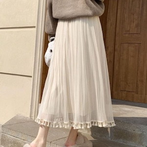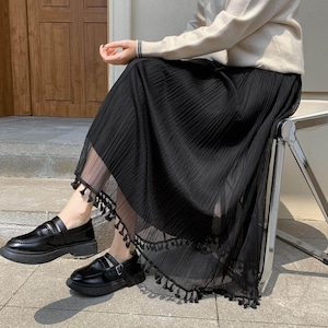 フリンジリバーシブルチュールスカート L0446