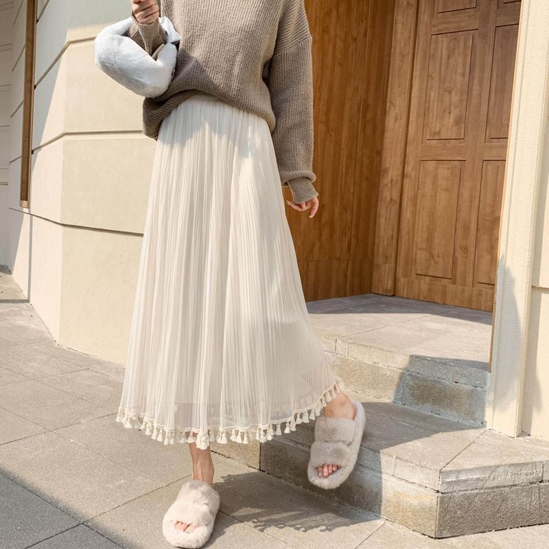 ウエストはゴム仕様で着心地も抜群。デイリーから特別な日まで、幅広いコーディネートに活躍する一枚です。